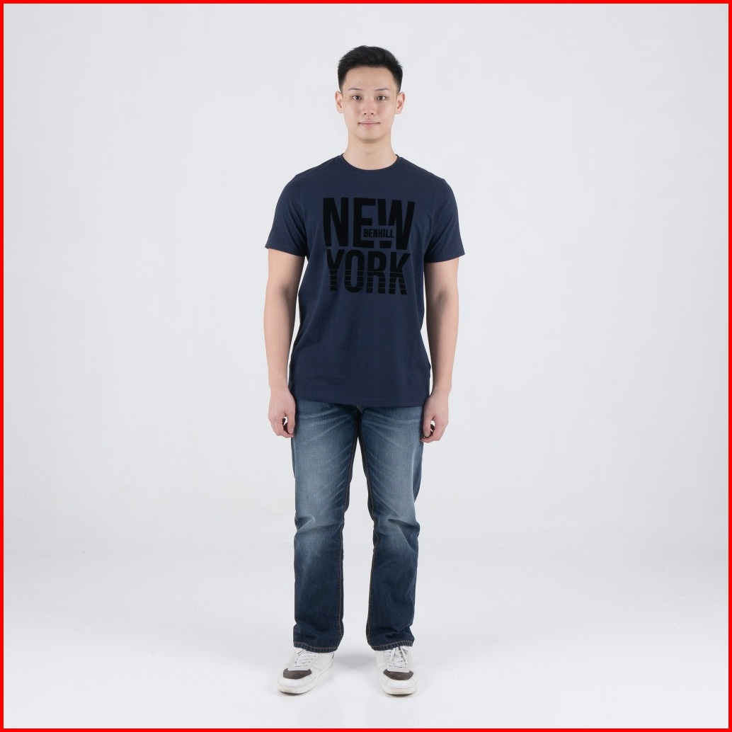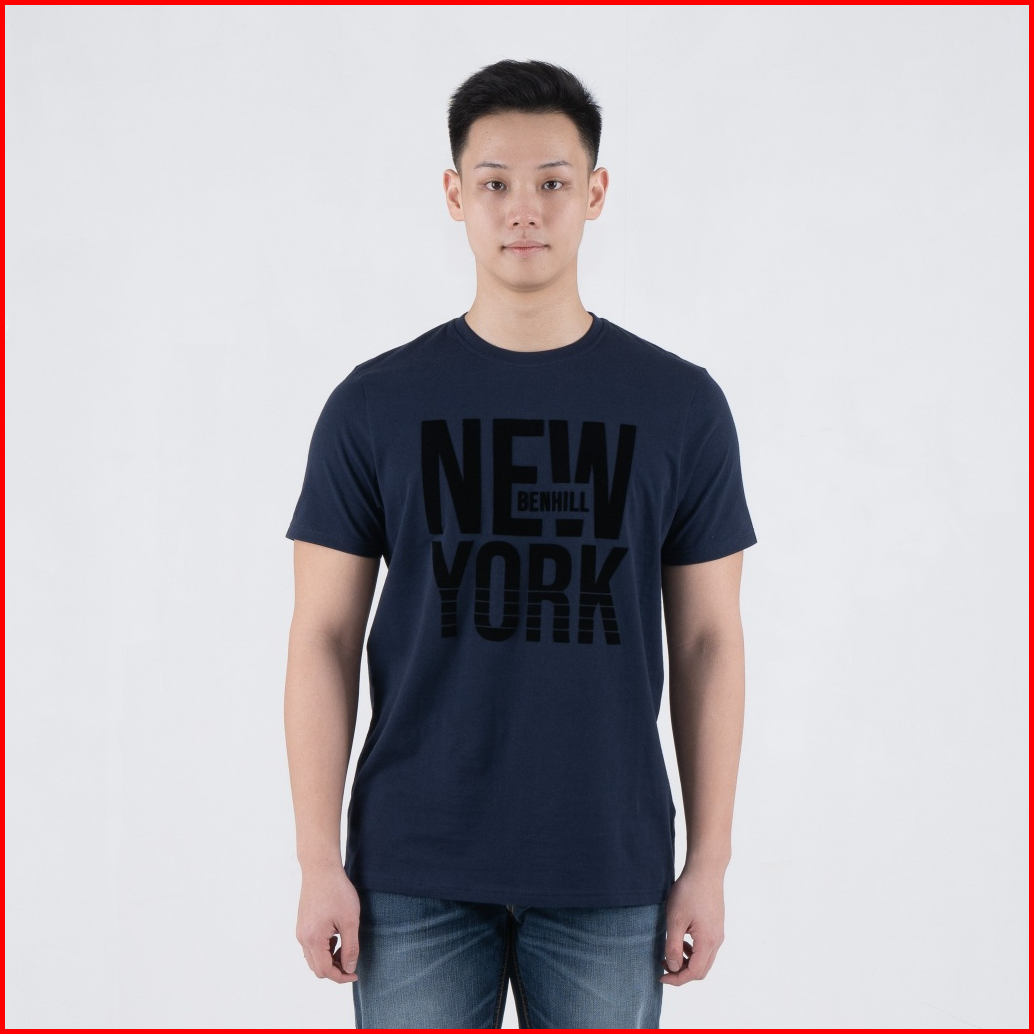 Benhill T-shirt Pria Grafis Katun 30s Combed Pendek Navy A477-39g68
