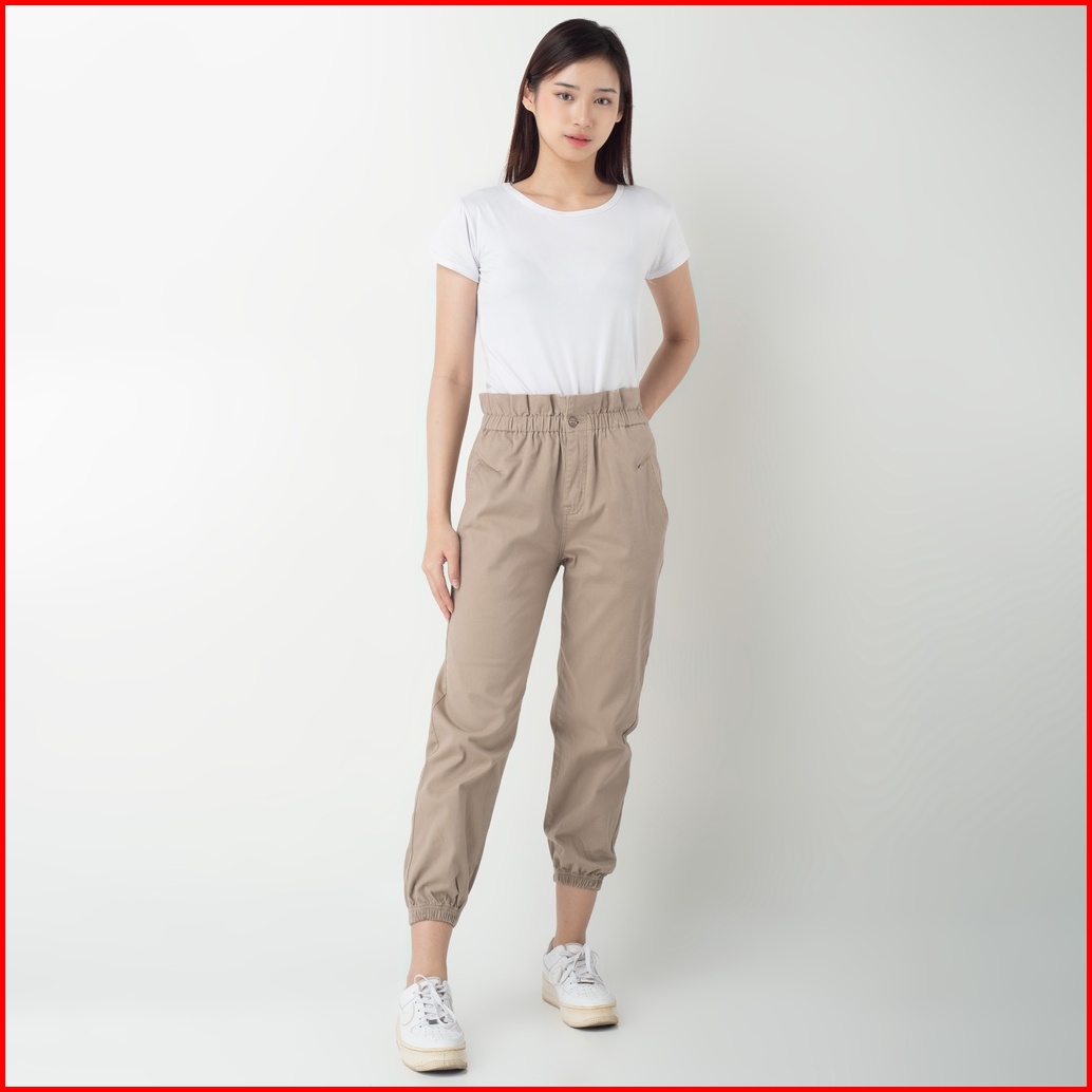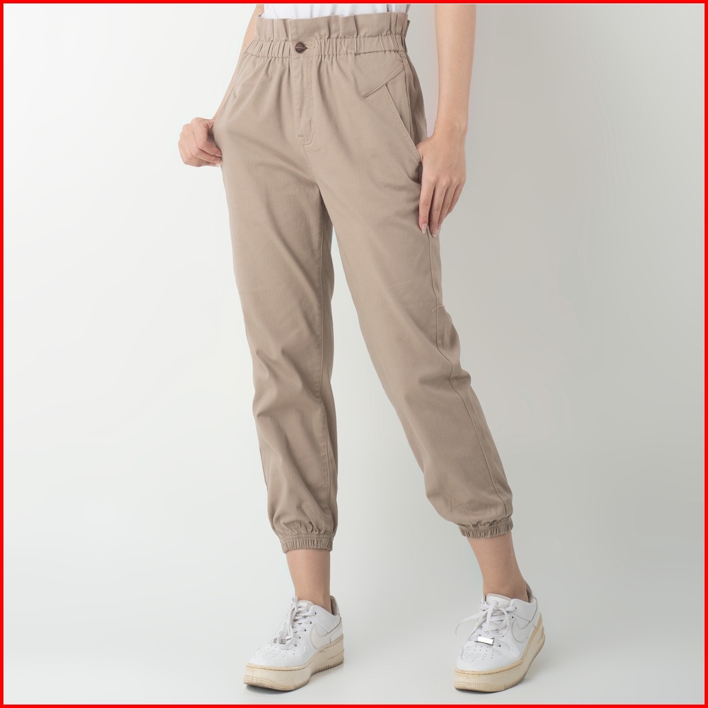 Benhill Celana Rae Stretch Wanita High Waist Jogger Pants Khaki 285-32991