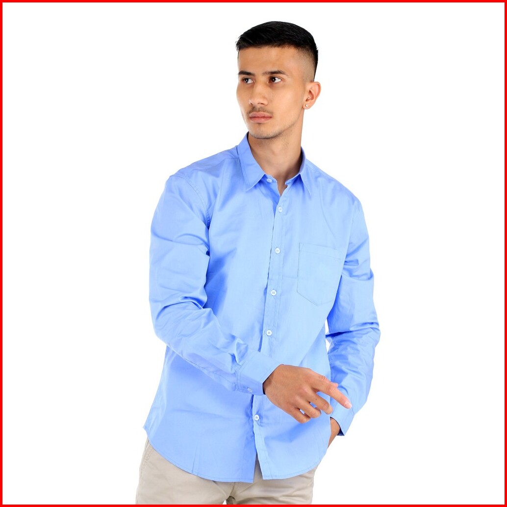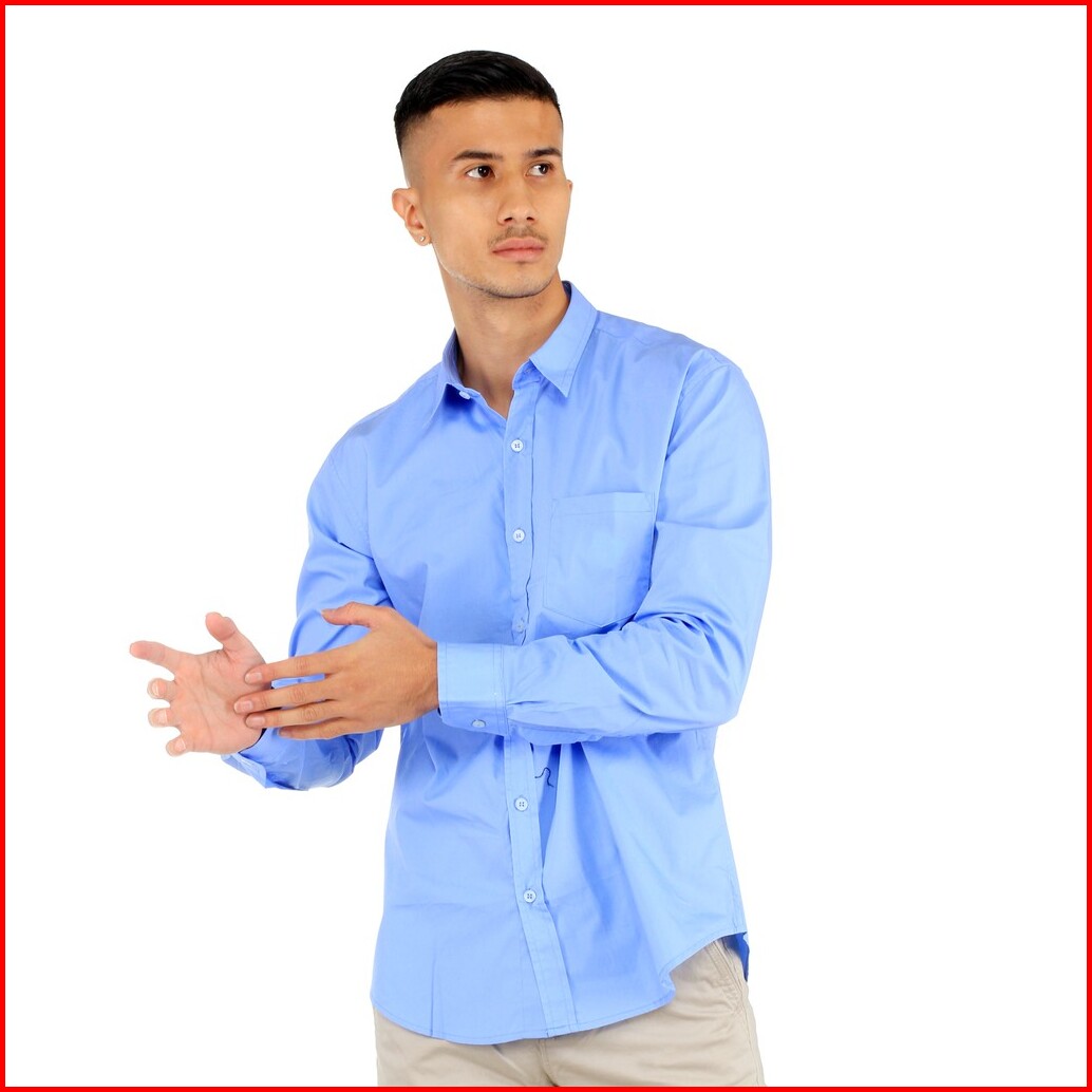 Benhill Kemeja Pria Kantor Katun Lengan Panjang Light Blue 22093-32247