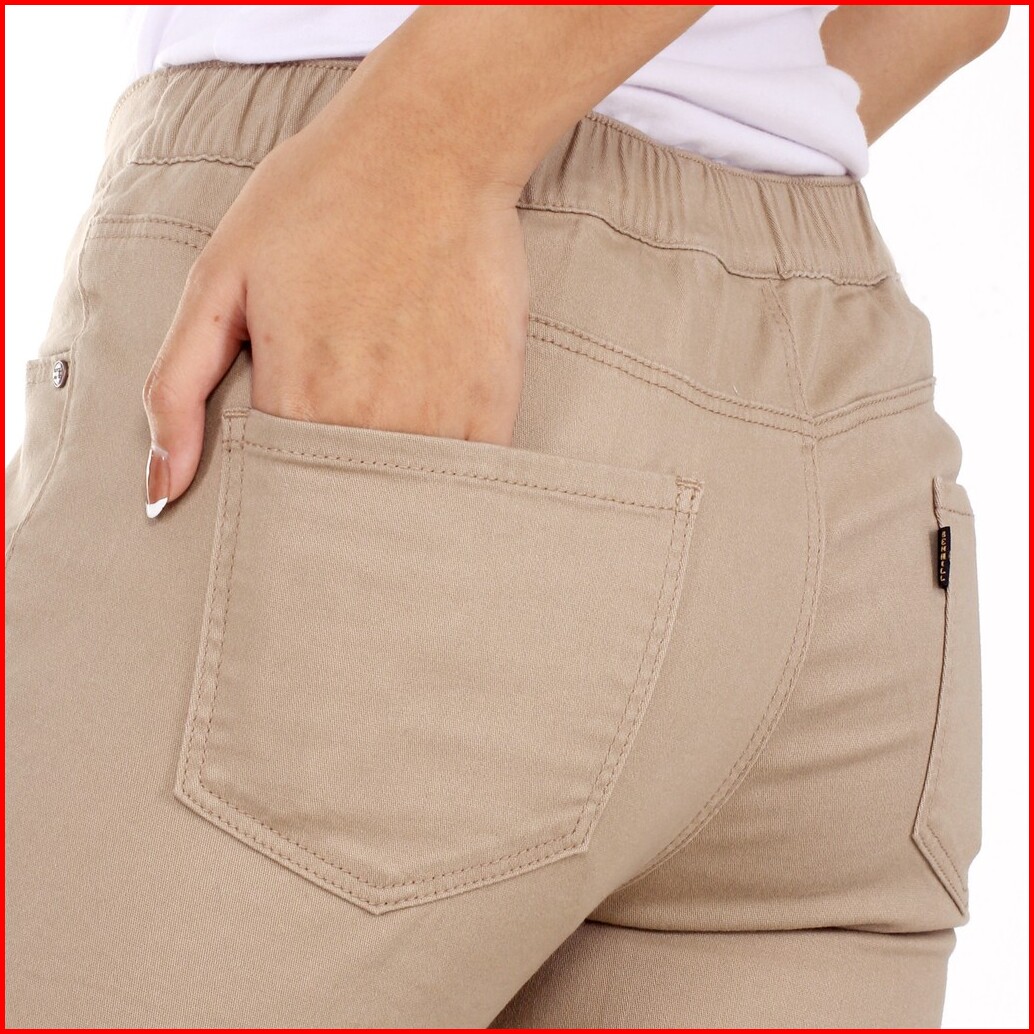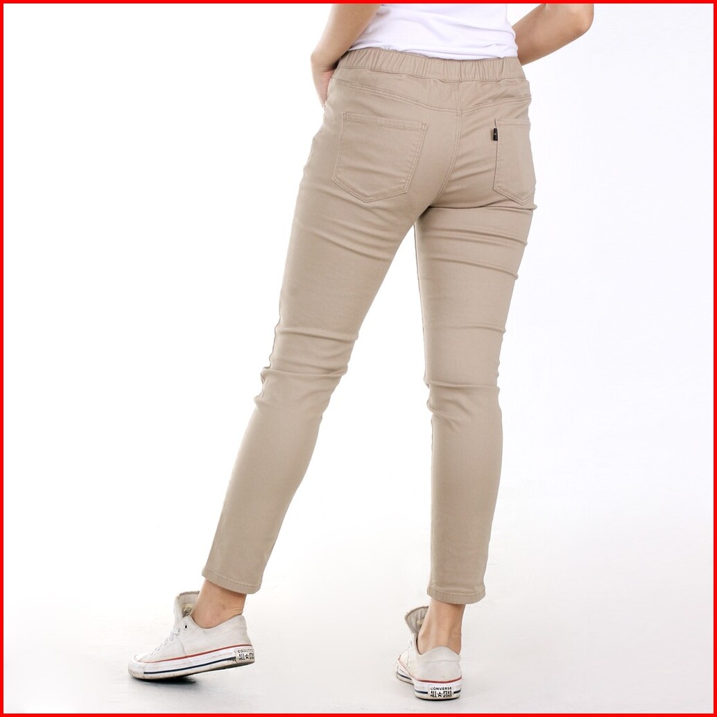 Benhill Celana Jiwon Panjang Wanita Pinggang Karet Katun Stretch Warna Cream 02239-986-32927