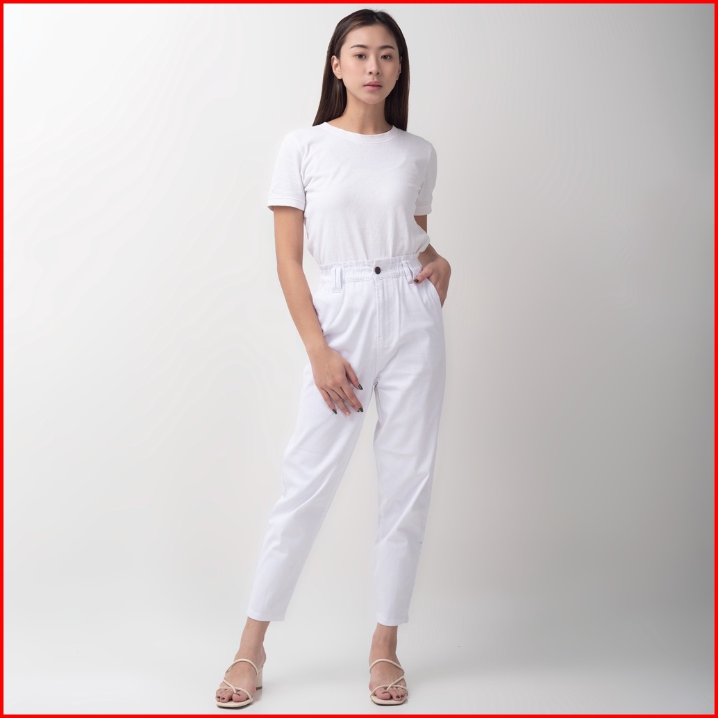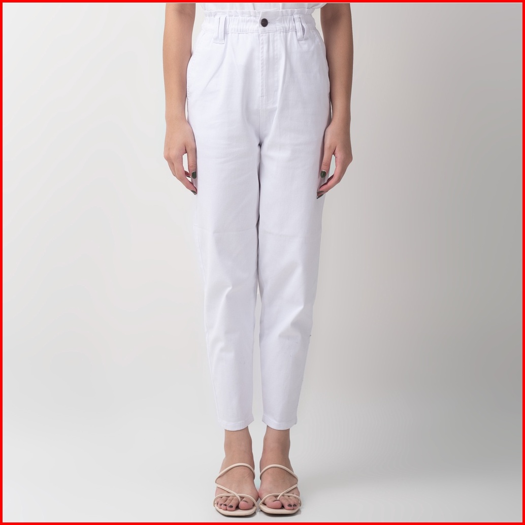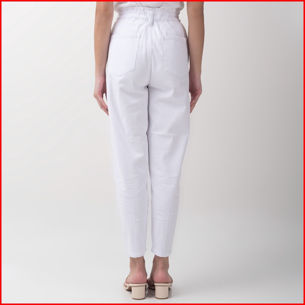 Benhill Celana Minji Panjang High Waist Pinggang Karet White 781-992-22155