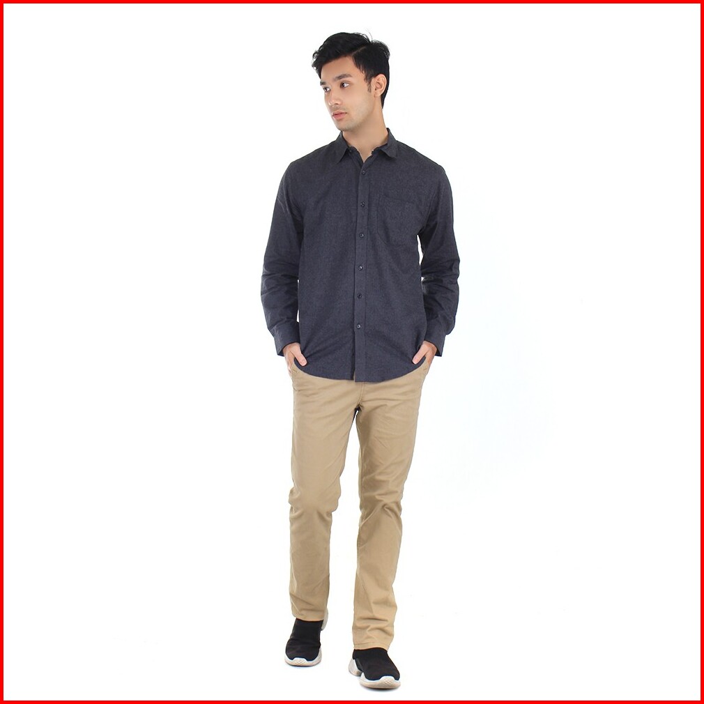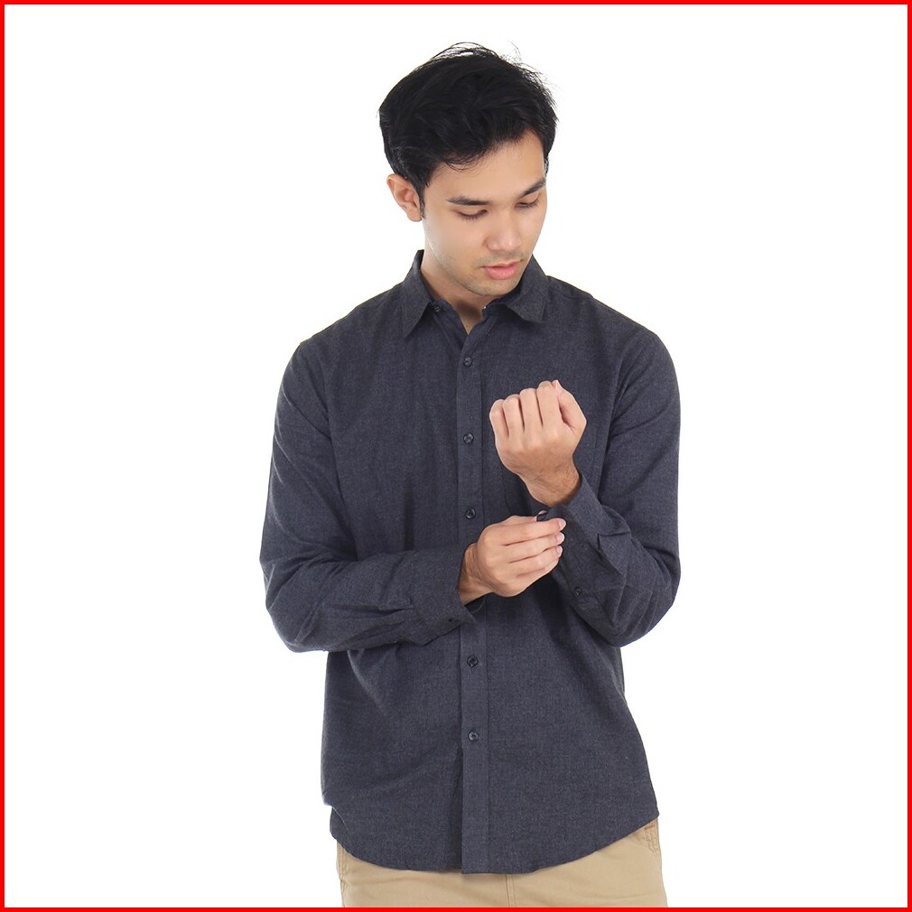 Benhill Kemeja Pria Flannel Polos Panjang Abu 25213-51604