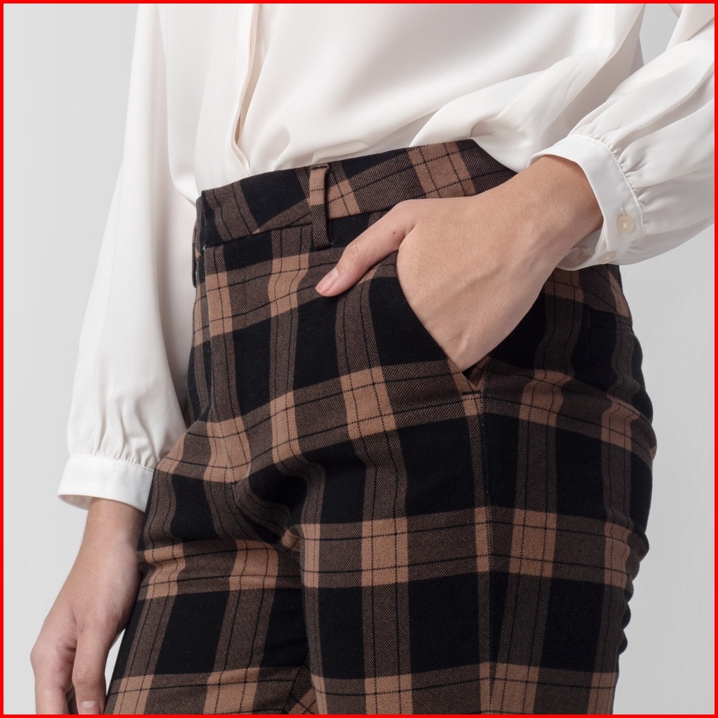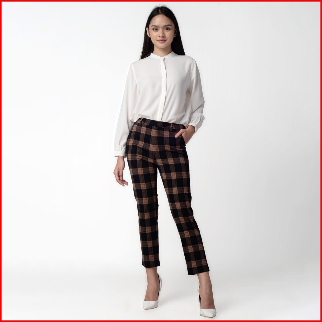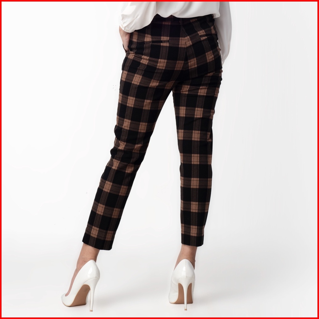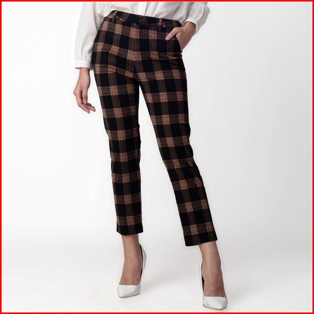 Benhill Celana Tartan Wanita Narae Plaid Pants Kotak Brown 263-32582