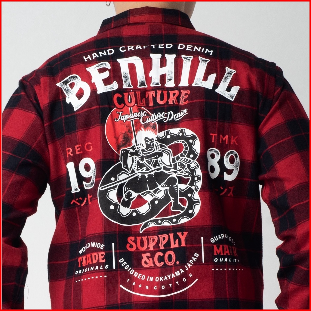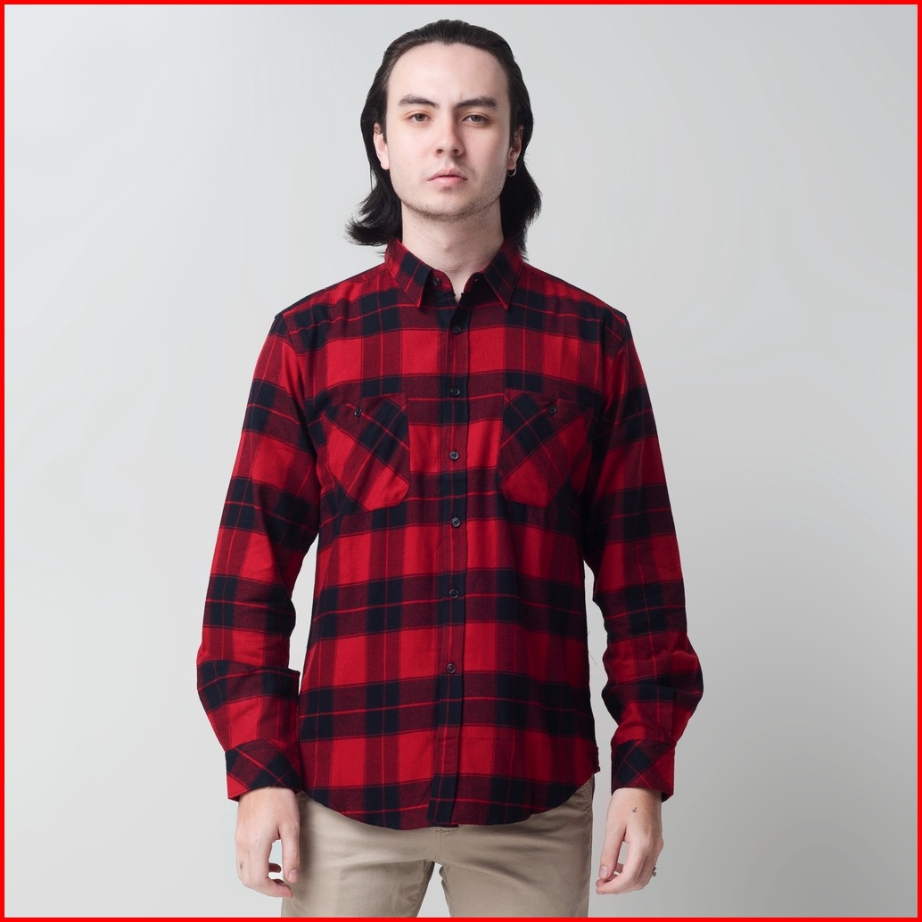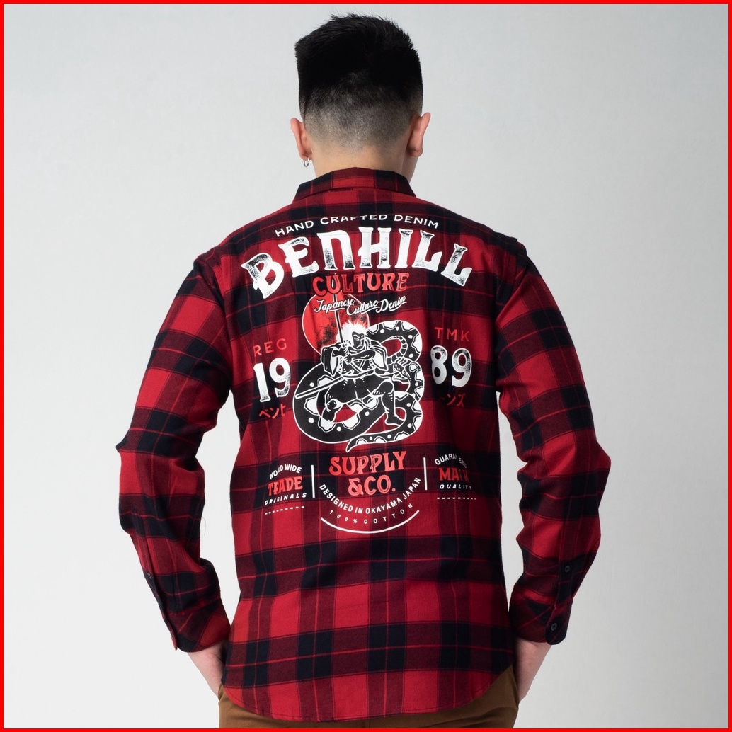 Benhill Kemeja Pria Flannel Print Panjang Kotak Merah 01-11470