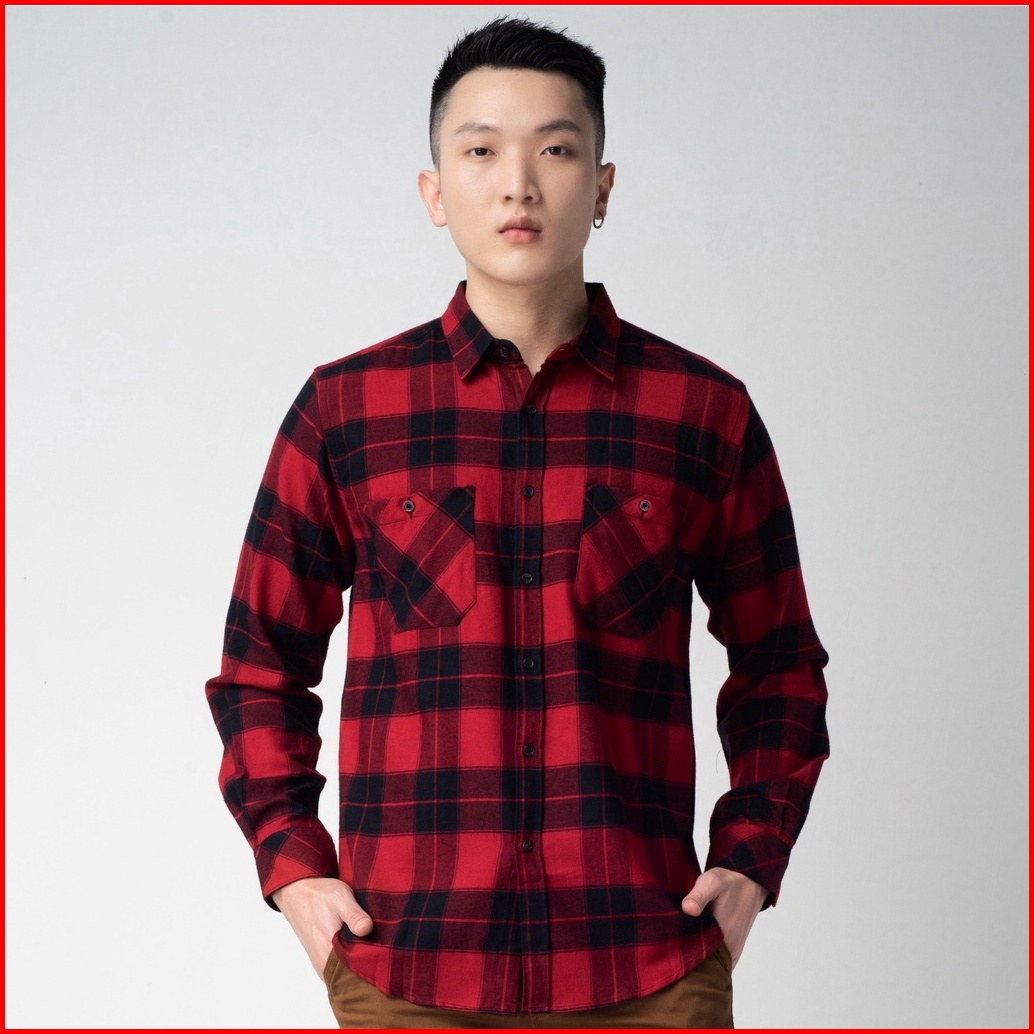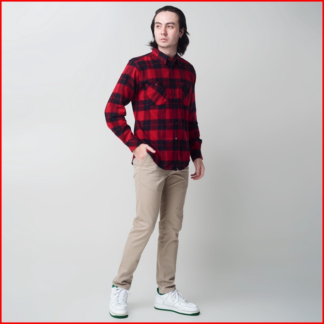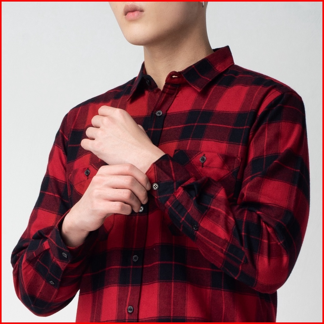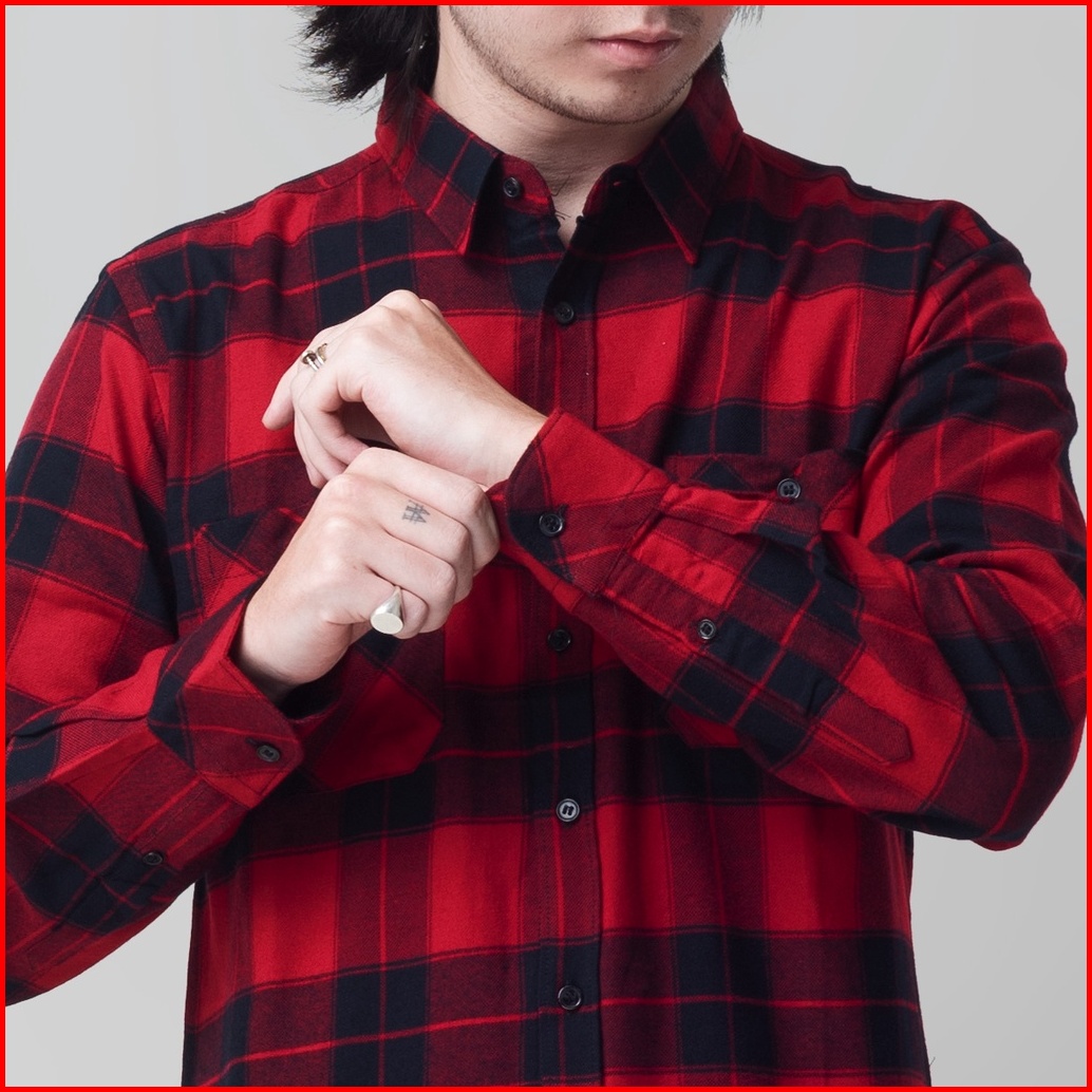 Benhill Kemeja Pria Flannel Print Panjang Kotak Merah 01-11470