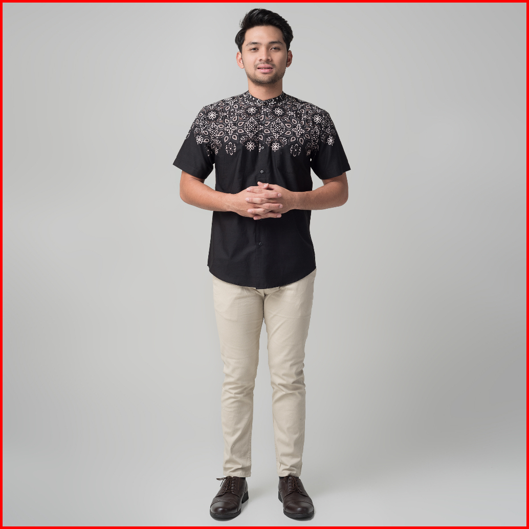 Benhill Kemeja Koko Pria Cotton Printing Pendek Black 50020-21-22-16210