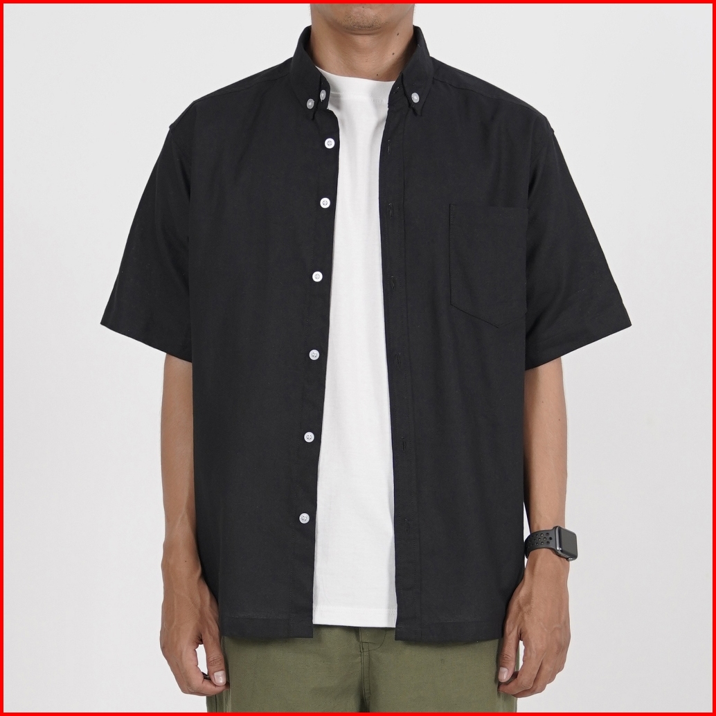 Fairgoods Kemeja Pendek Linen Oversize Biance Black
