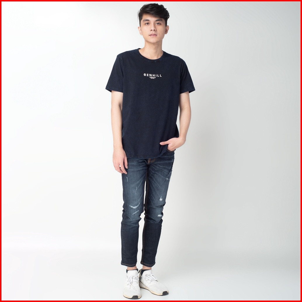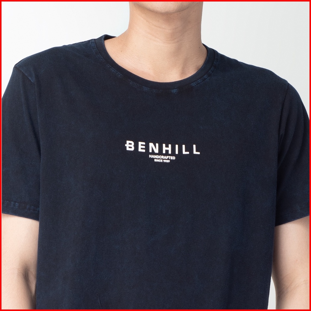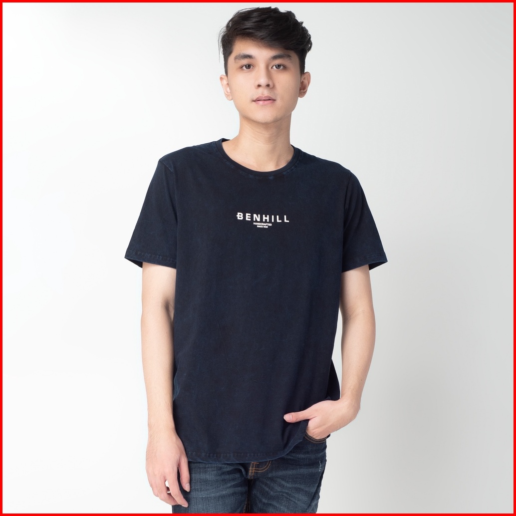 Benhill T-shirt Pria Grafis Washed Katun 30s Combed Pendek Navy 317-55368