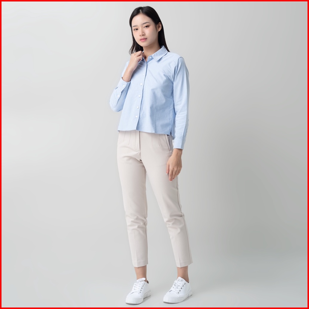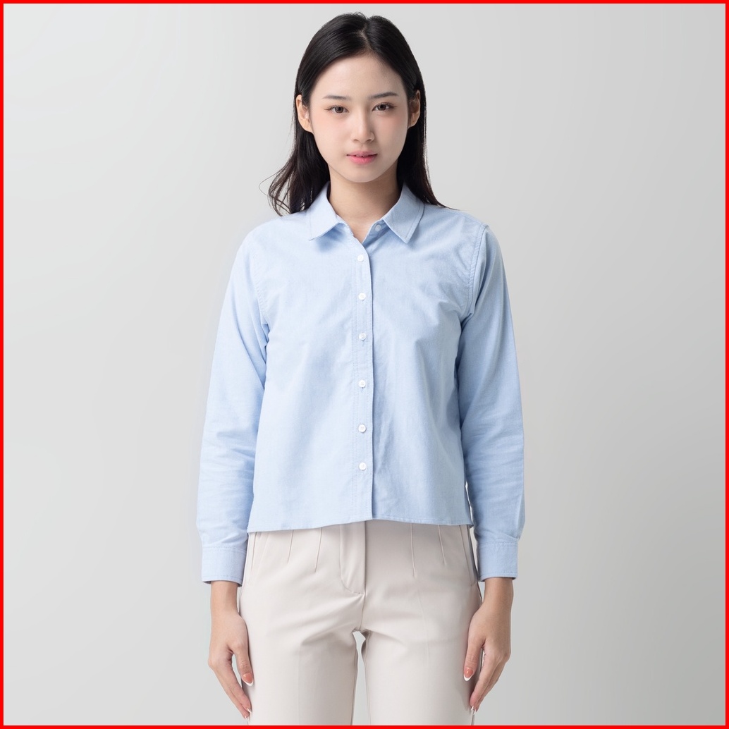 Benhill Kemeja Crop Top Wanita Polos Lengan Panjang Blue 879-13384