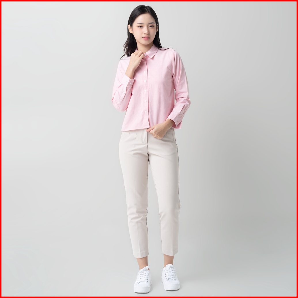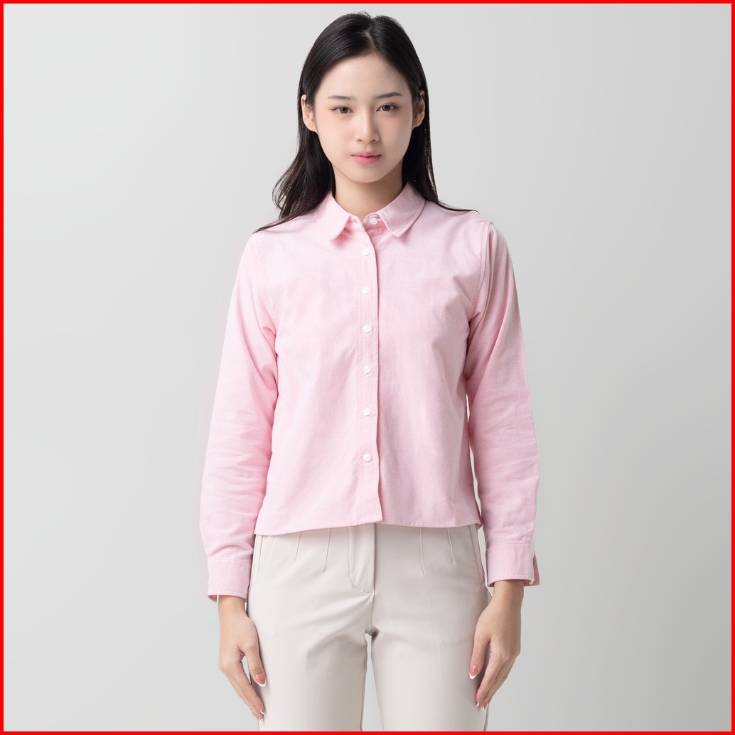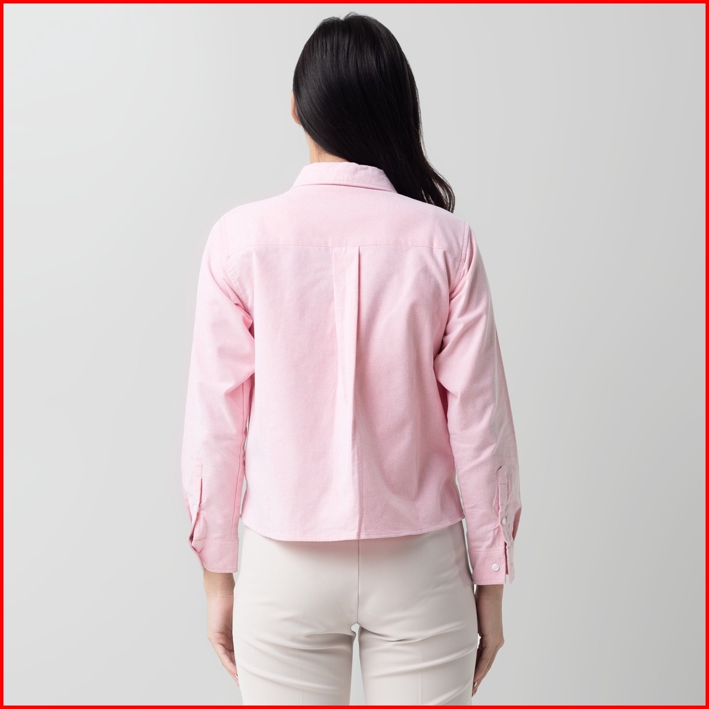 Benhill Kemeja Crop Top Wanita Polos Lengan Panjang Pink 878-13j84