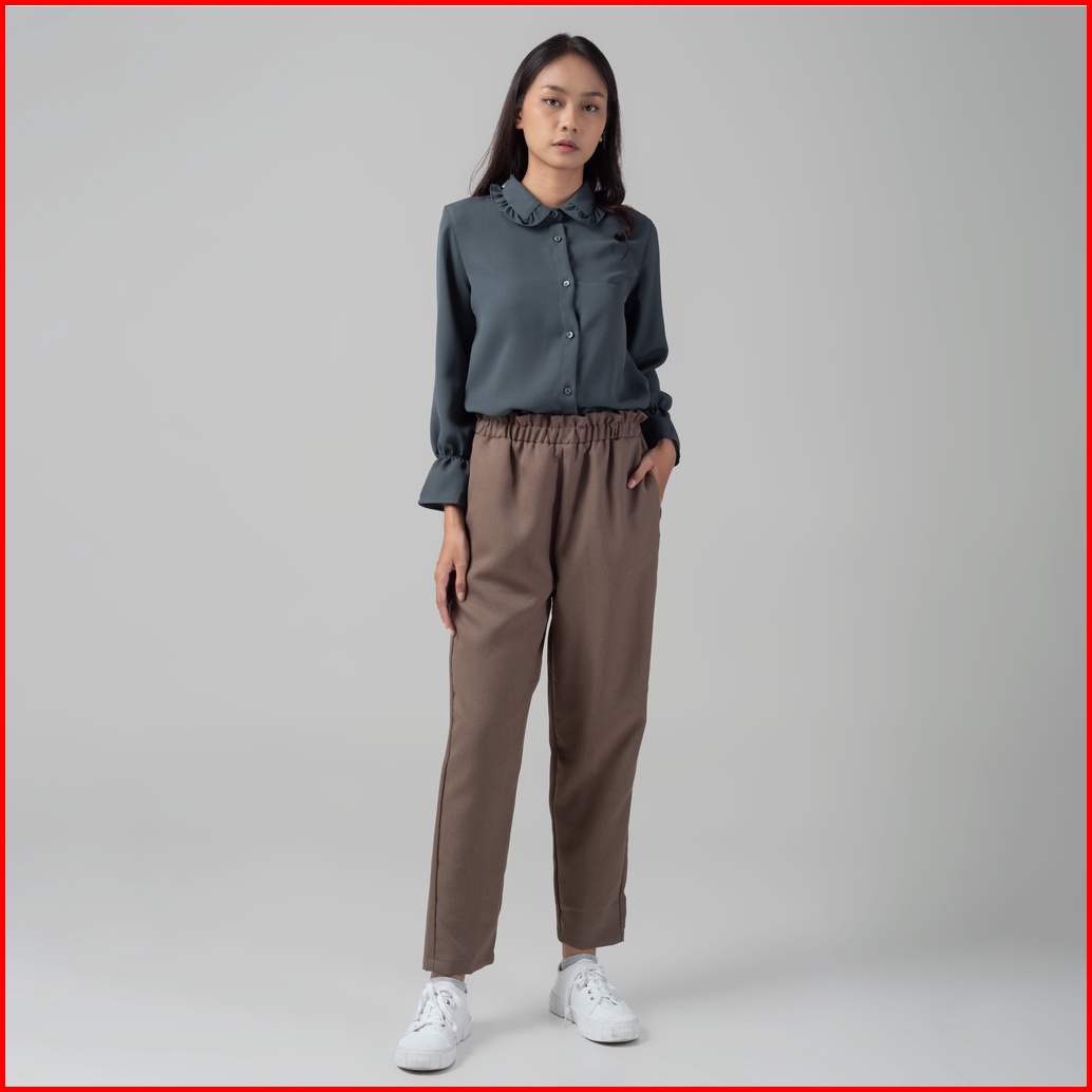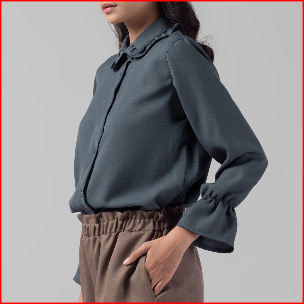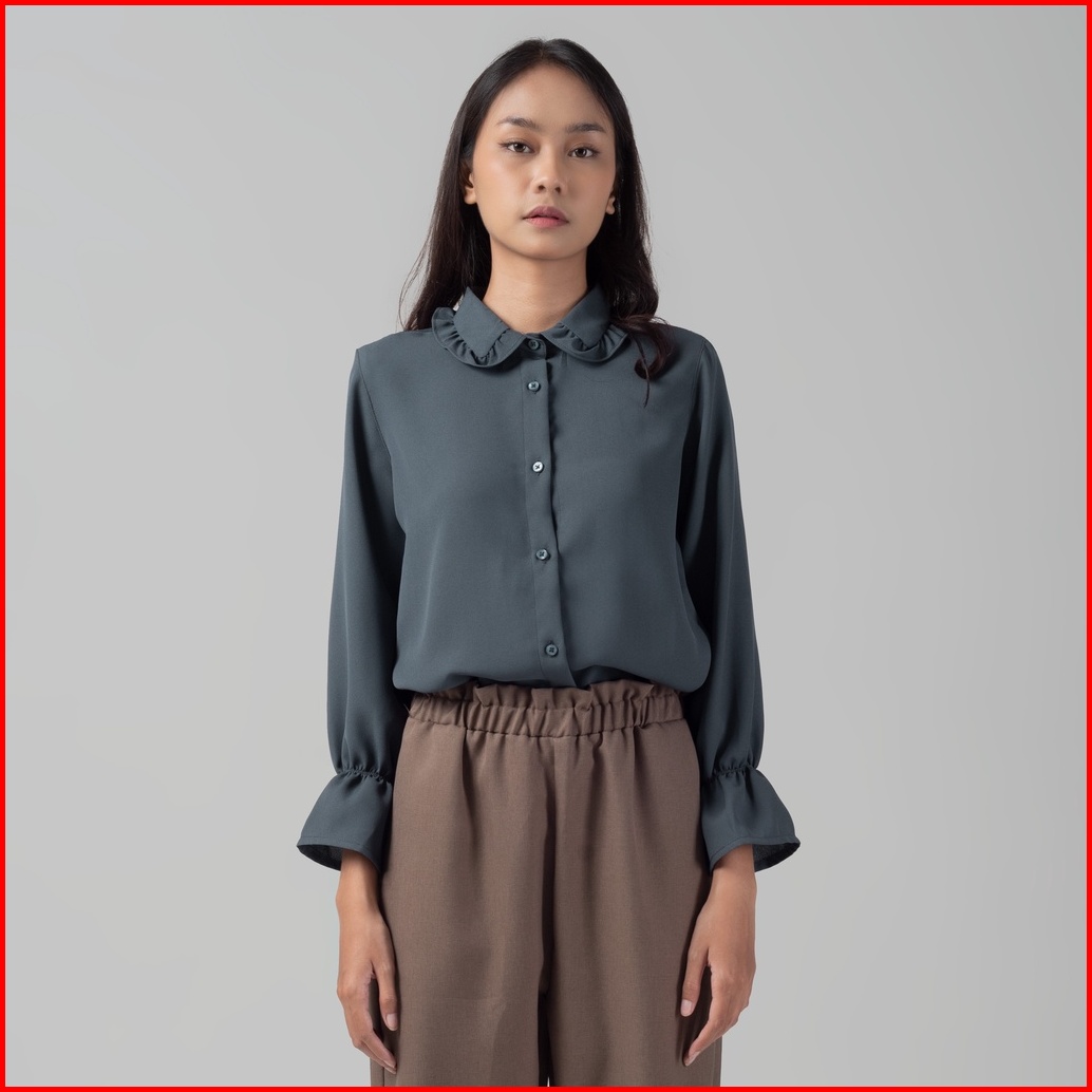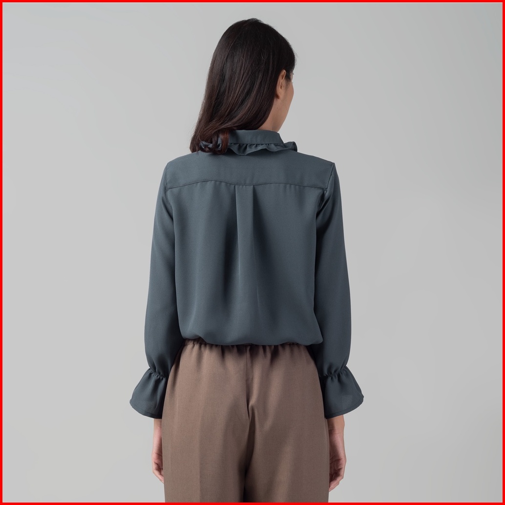 Benhill Kemeja Hyeon Tops Lengan Panjang Wanita Vintage Style Detail Krah Dan Lengan Ruffle Dark Grey 920-29688