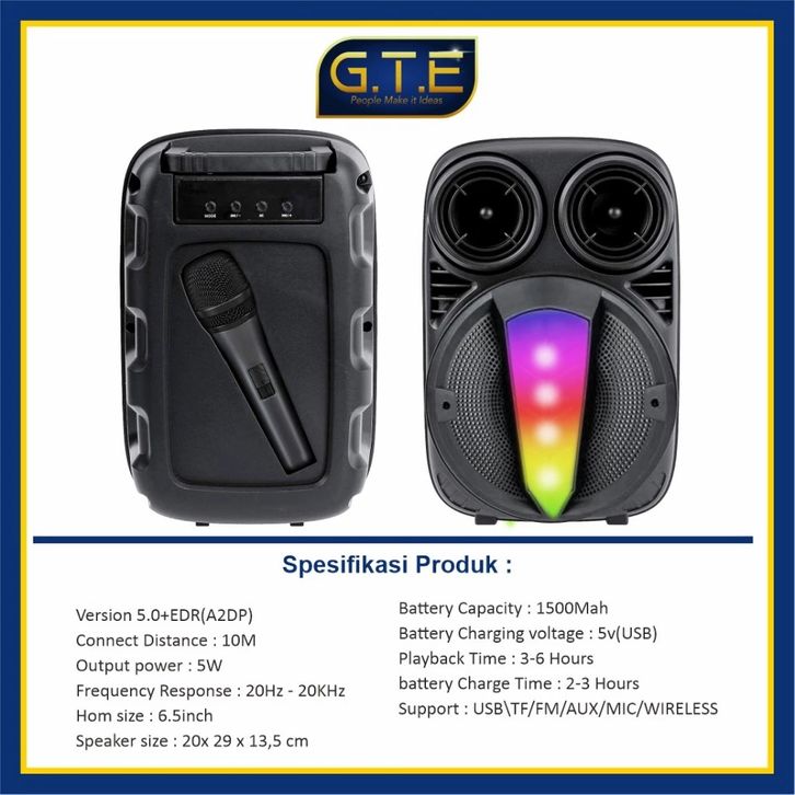 Speaker Wireless Bluetooth 3381 Series 6,5 Inch Speaker Karaoke Portable Free Mic Fm Super Full Bass Original