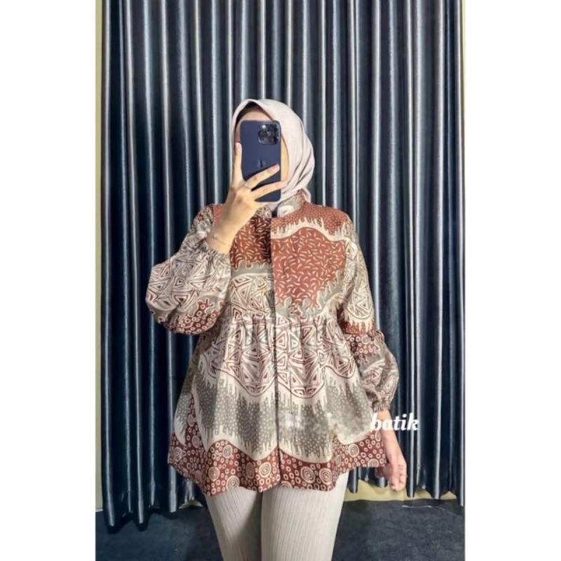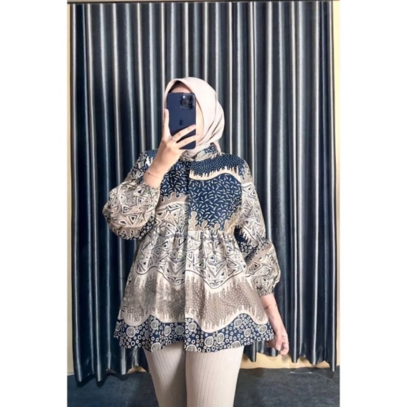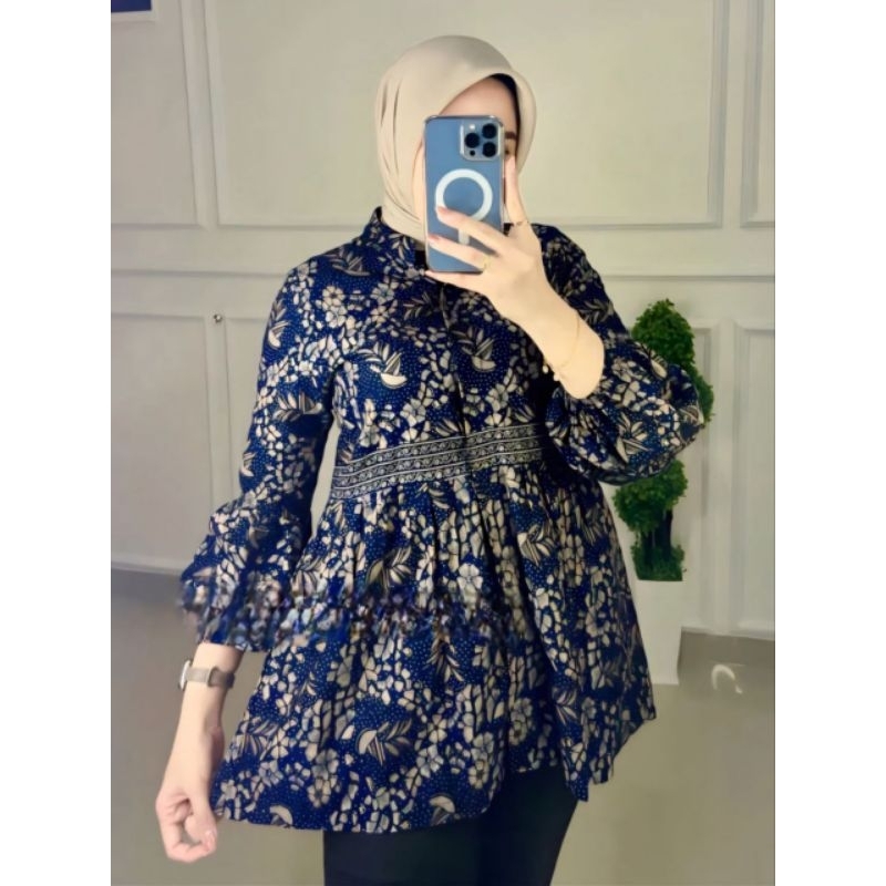 ATASAN BATIK WANITA BLUS BATIK LENGAN BALON MODEL PEPLUM PAYUNG BLUS TERBARU FAEYBTK