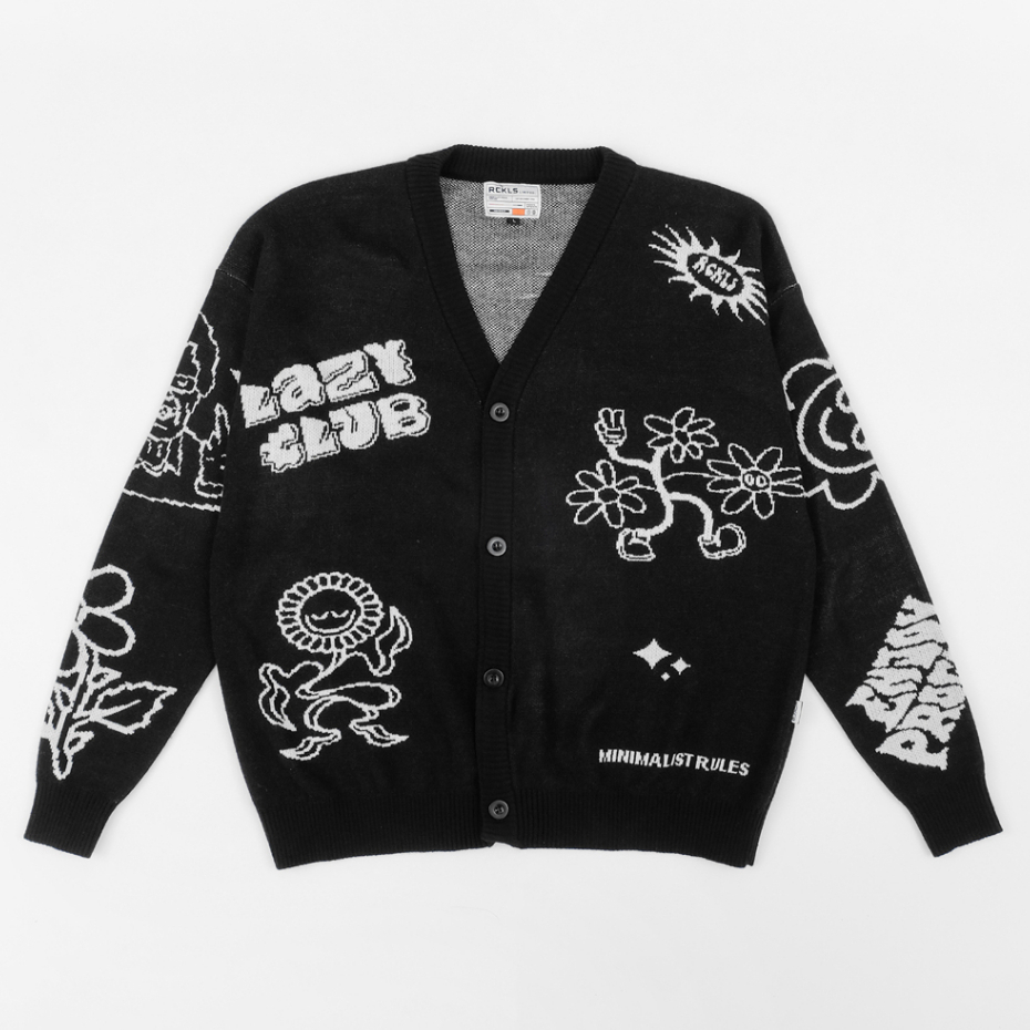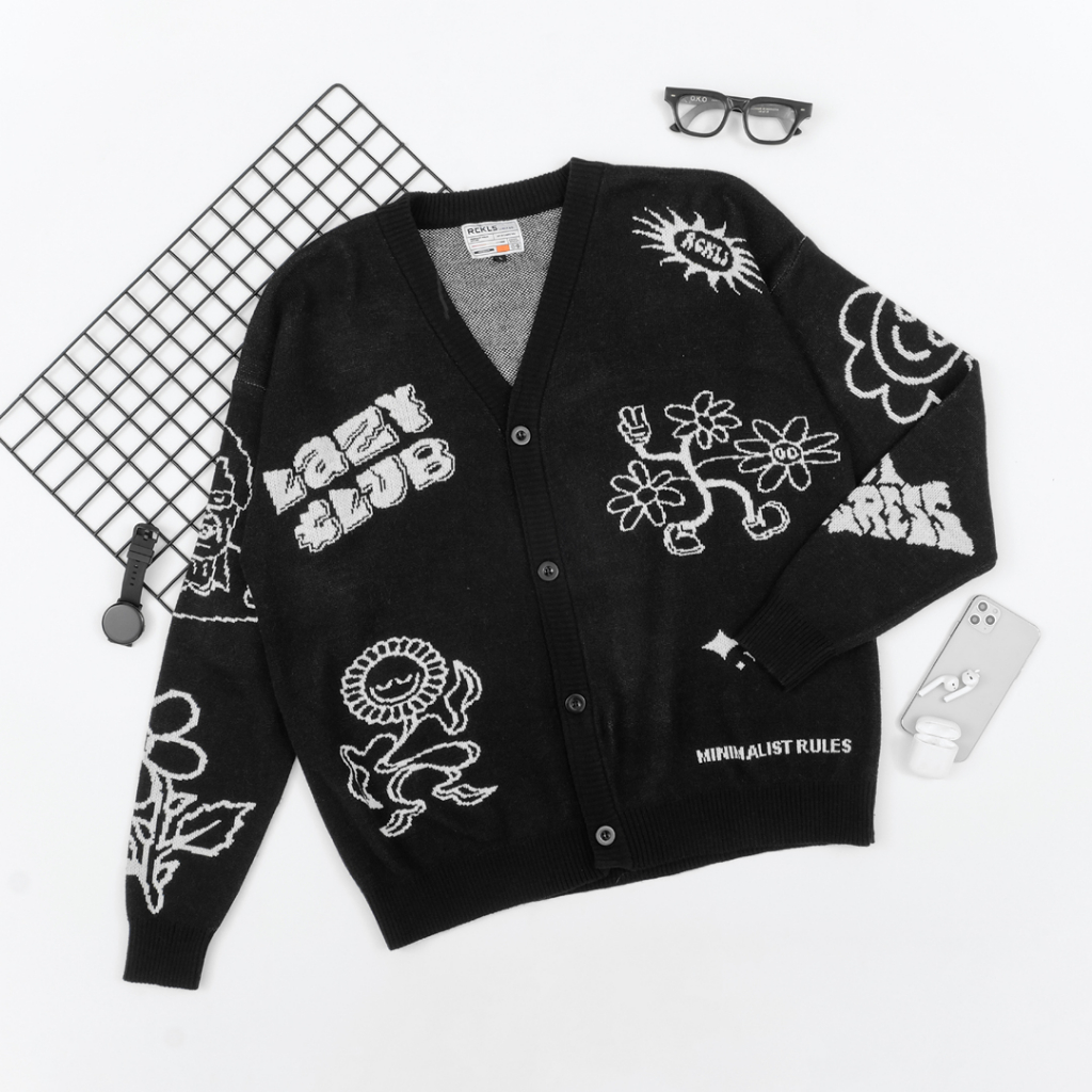 CARDIGAN RAJUT PRIA KNIT WEAR MINIMALIST RULES BLACK SWEATER KNITE KARDIGAN COWOK KASUAL PREMIUM UNISEX