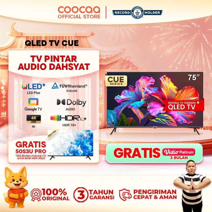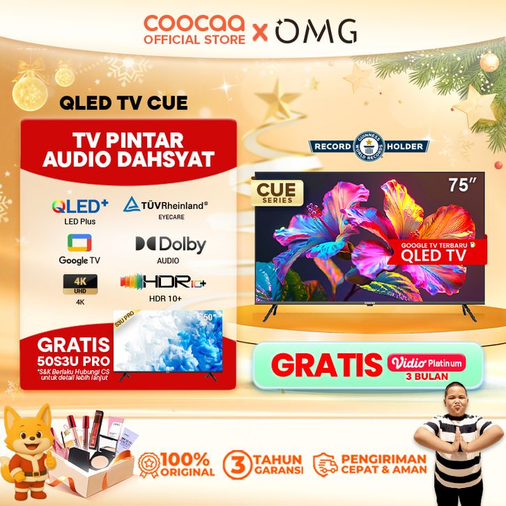 TERBARU GOOGLE TV COOCAA 75 inch - Google TV - 4K QLED+ - Eye Care - Far Field Control - Netflix/Youtube - Dolby Atmos/