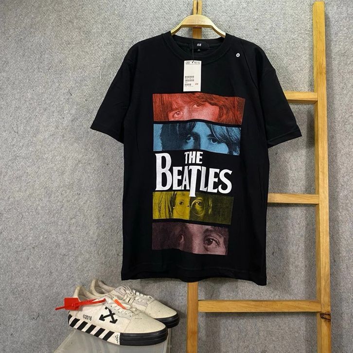 Kaos THE BEATLES LOOK EYES HITAM T-shirt Oversize pria/wanita