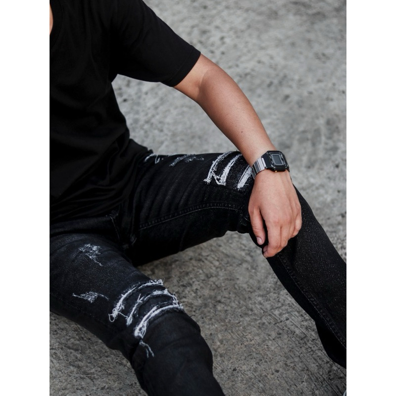 CELANA SLIMFIT JEANS BIKERS PRIA RIPPED-ROCK SERIES BLACK JAZZ EDITIONS