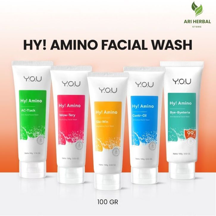 FACIAL WASH YOU HY! AMINO 100G ANTI ACNE HYDRATING BRIGHTENING OIL CONTROL SABUN CUCI MUKA TERLARIS