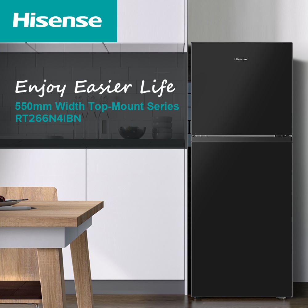 HISENSE KULKAS 2 PINTU KAPASITAS 223L RT266N4IBN - BLACK【NO FROST + MULTI AIR FLOW】【DEODORIZING FILTER】【EASY TO USE】