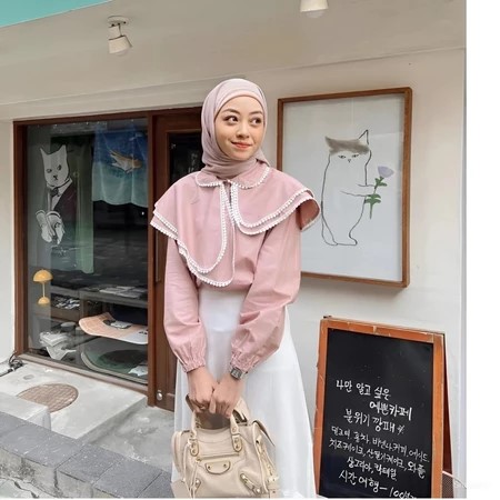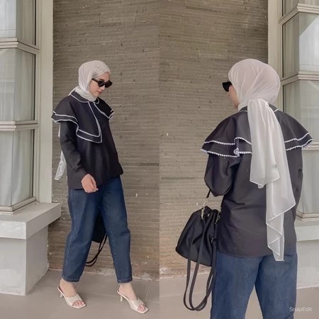 Outfit - Liana Top Atasan Vintage Wanita Muslim Matt Shakila Polos Basic OOTD Korean Style