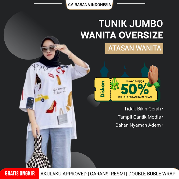 Baju Atasan Tunik Sweater Baju Wanita Muslimah Oversize Kemeja Tunik Printing Anti Luntur All Size Jumbo