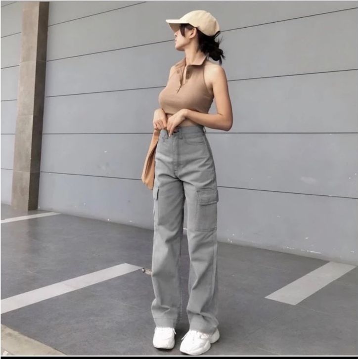 Celana Cargo Highwaist Jeans Wanita Voll 2 Non-Stretch