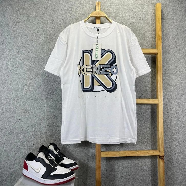 Kaos KENZO LOGO K PUTIH T-shirt Oversize pria/wanita