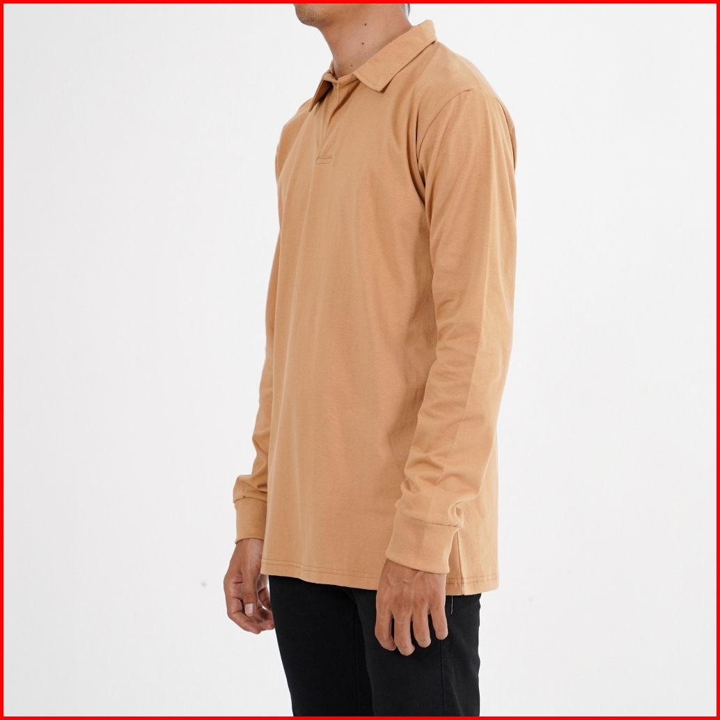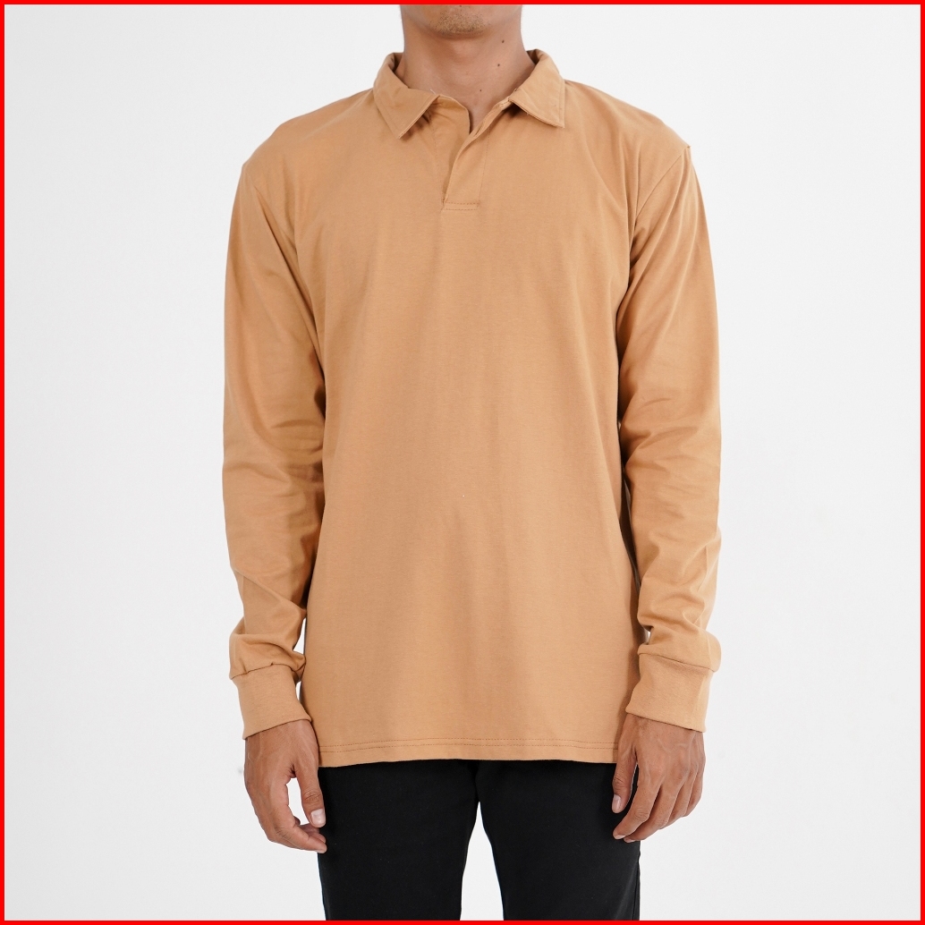 Fairgoods Kaos Polo Shirt Lengan Panjang Kerah Relax Almond