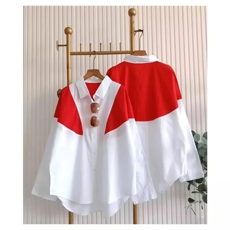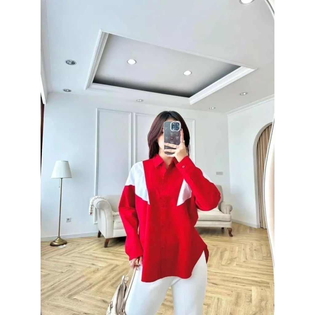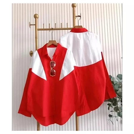 Outfit - Oval Kemeja Atasan Wanita Muslim Fit To L XL Besar Matt Cringkle Two Tone Color Premium