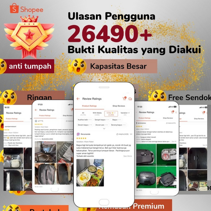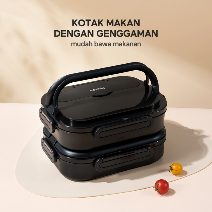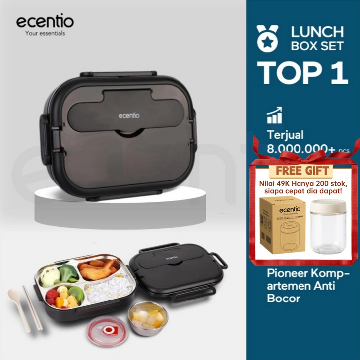 ecentio kotak bekal /lunch box tempat makan anti tumpah GRID 1000ml free Sendok