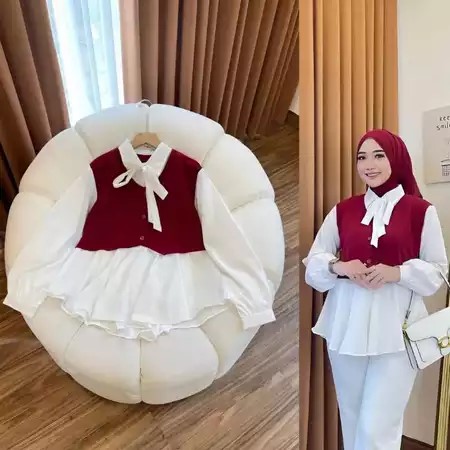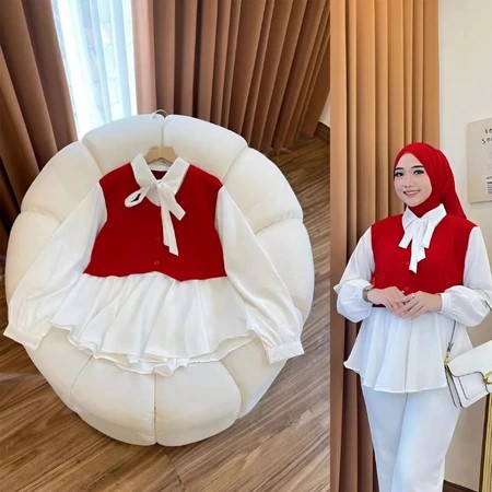 Outfit - Sweet Blouse Atasan Merah Putih Matt Cringkle Polos Basic Premium OOTD Casual Daily