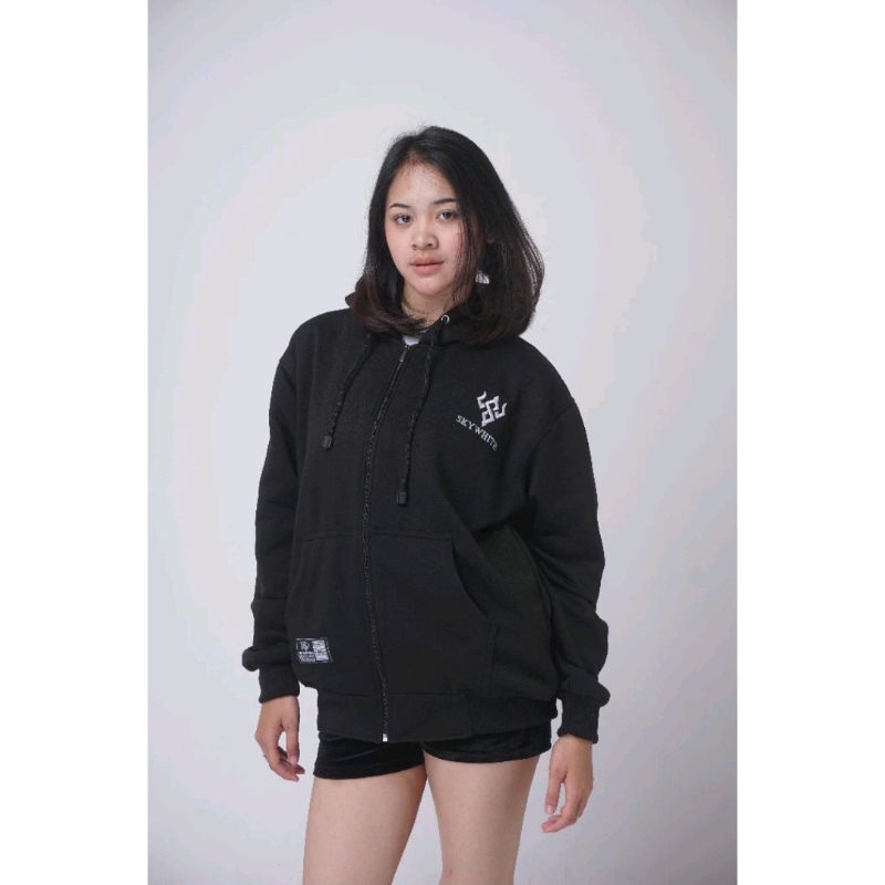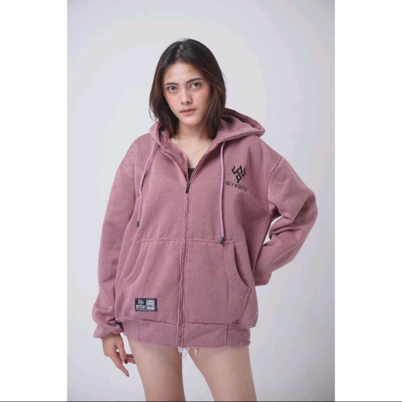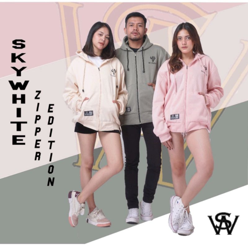 HOODIE ZIPPER SWEATER SKYWHITE BORDIR TIMBUL BAHAN GRAMASI 280 HALUS DAN TEBAL