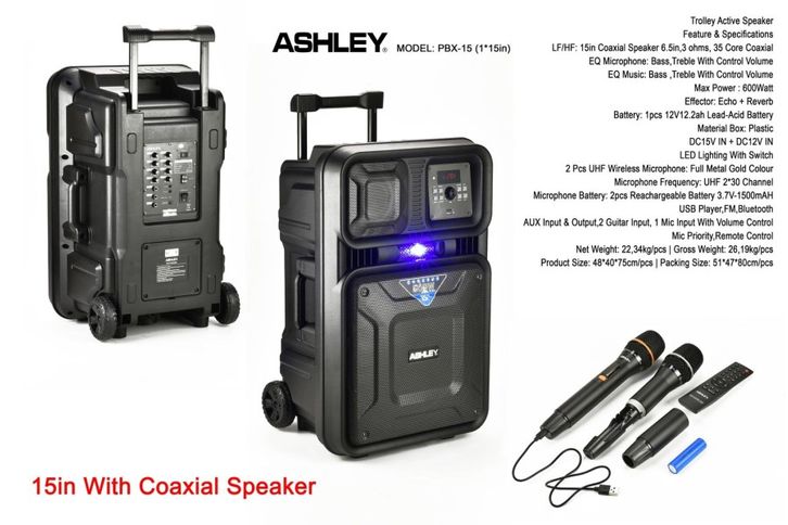 Speaker Portable 15inch Ashley PBX 15 PBX15 Original Bluetooth USB 2Mic Wireless