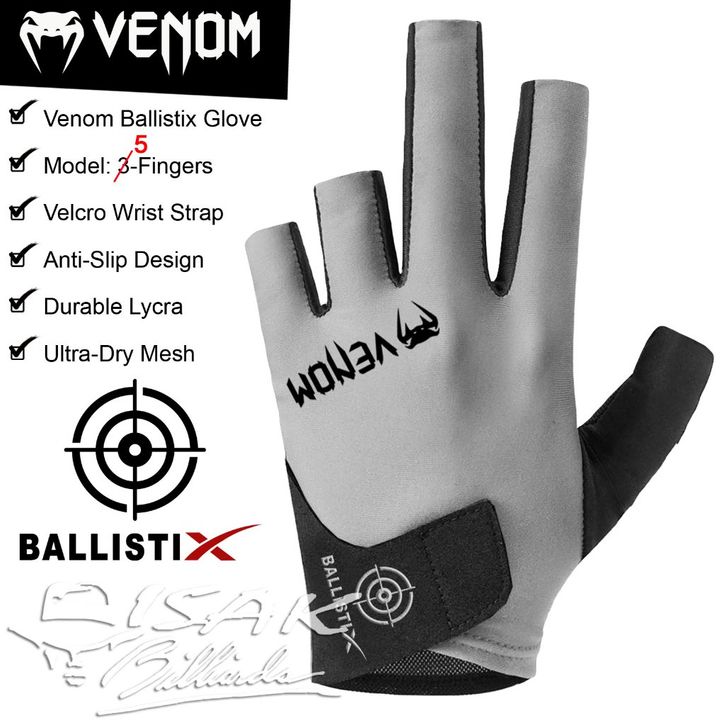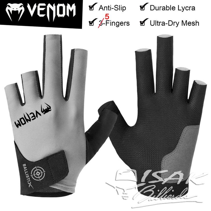 10.10 VENOM BALLISTIX 5-FINGER GLOVE GREY - ANTI SLIP SARUNG TANGAN BILLIARD LYCRA MESH