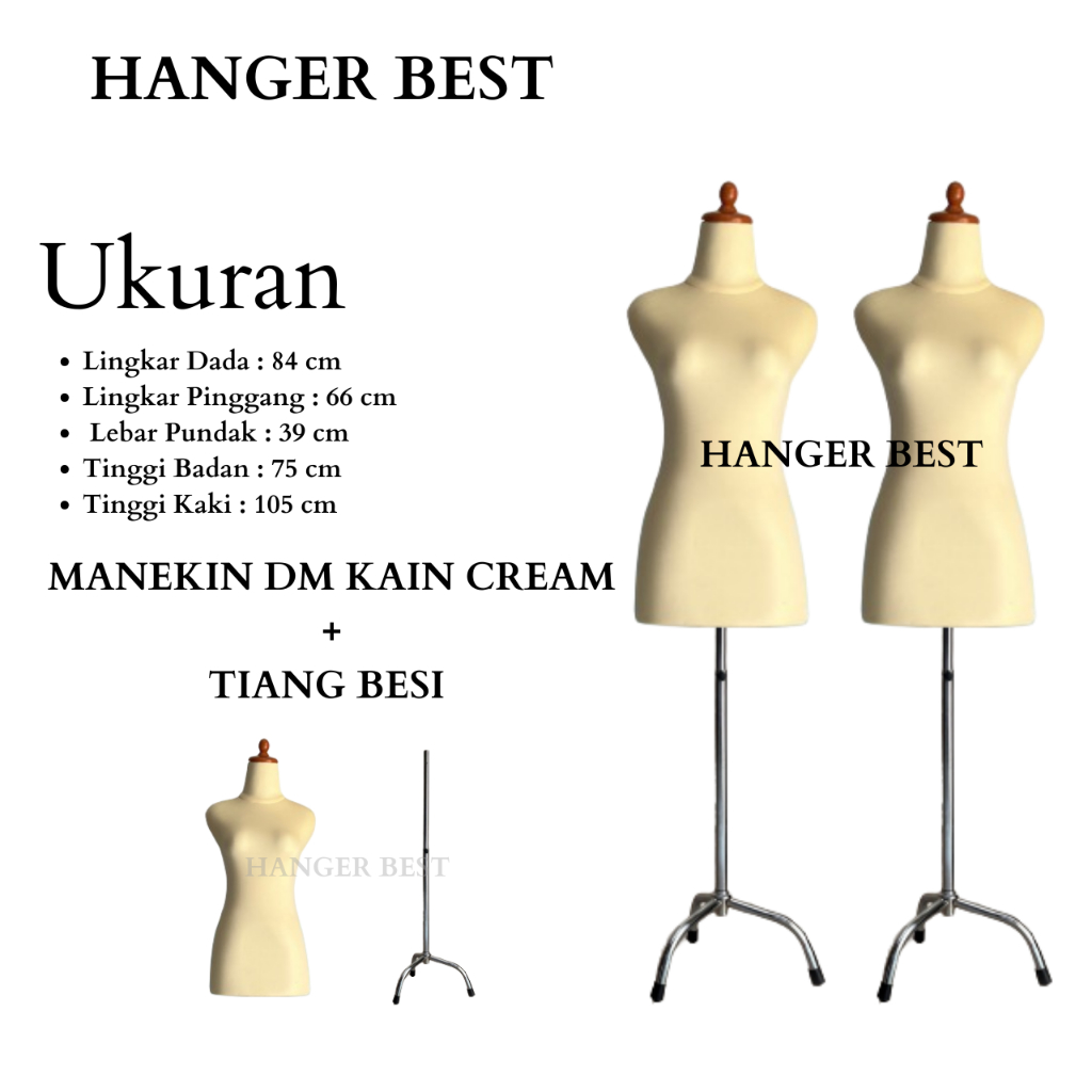 Manekin Full Body Manekin Wanita DM CREAM Ls Busa Dressmaker - Patung Baju Dm CREAM Busa Pentul Set Tiang
