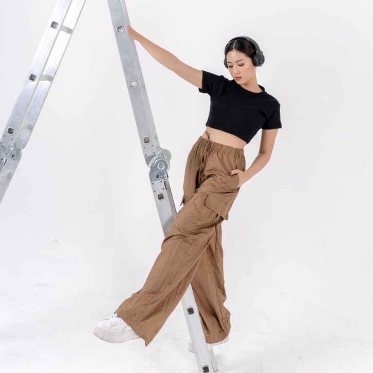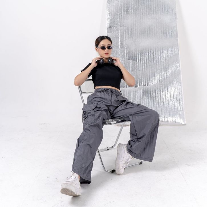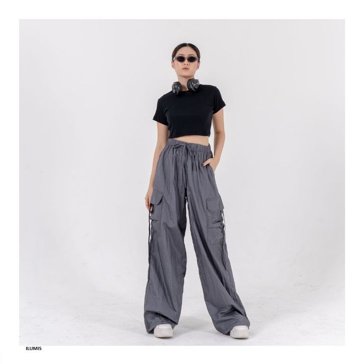 Celana Cargo Pants Kulot Panjang Parasut Wanita Korean Look