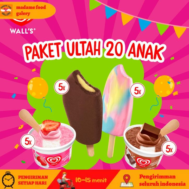 Paket Ulang Tahun 20 Anak - Es Krim Ice Cream Wall's