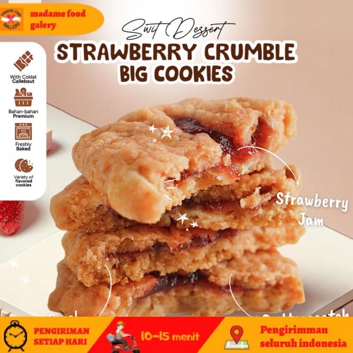 Soft Baked Strawberry Crumble Cookies Kue Best Seller Cemilan Manis Viral Homemade by Swit Dessert