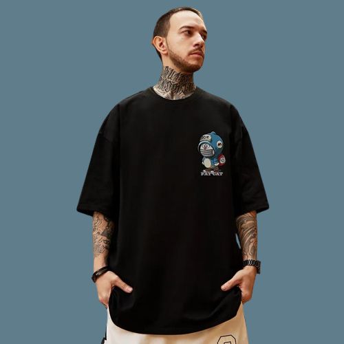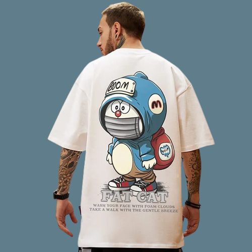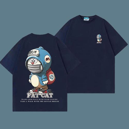 Baju Oversize Pria Wanita Kaos Distro Doraemon Keren Fatcat Atasan Jumbo Cowok Cewek Lengan Pendek Bahan Halus Adem