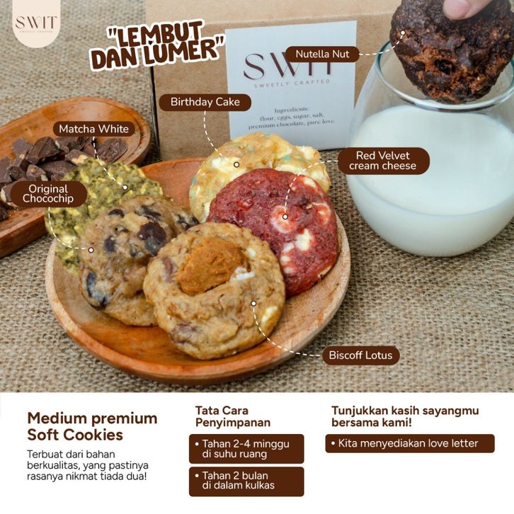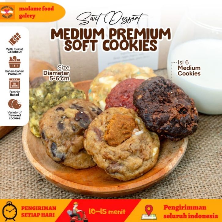 Soft Cookies Medium Premium Isi 6 Pcs Snack Viral Cookies Lumer Melted Best Seller By Swit Dessert