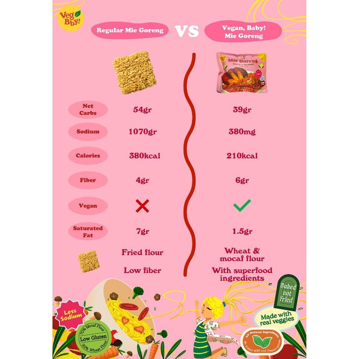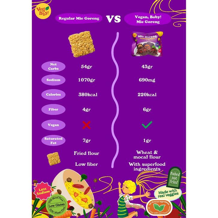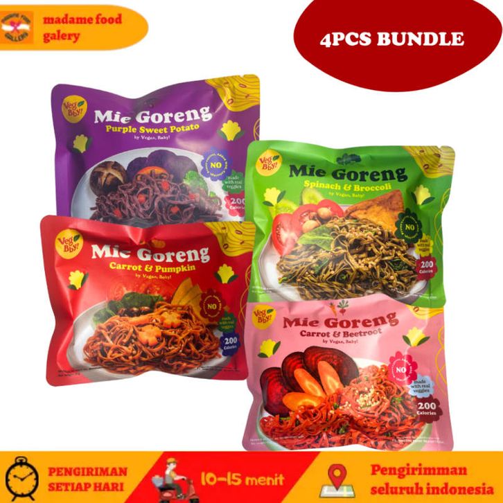 4pcs Vegan Baby Mie Goreng Mix Bayam Brokoli, Wortel Bit, Wortel Pumpkin, Ubi Ungu