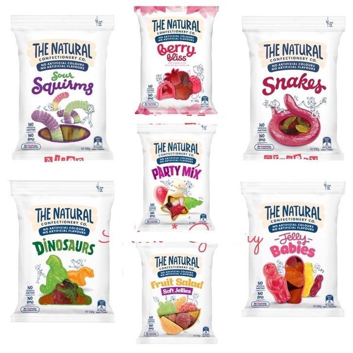 Candy The Natural Confectionery Co 180 Gr Berry Bliss, Dinosaurs, Fruit Salad, Jelly Babies Party Mix Snake Sour Squirms