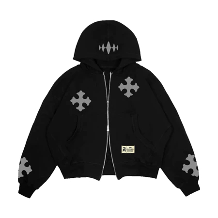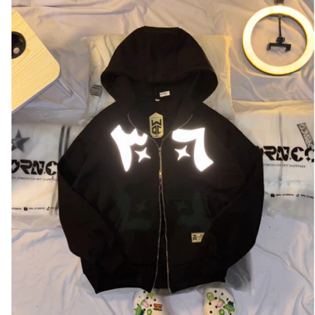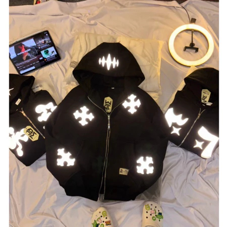 JDMCLOTHING ZIPPER BOXY HOODIE REFLECTIVE MENYALA DOUBLE KEPALA ZIPPER FLEECE 280 GSM UNISEX HOODIE PRIA SWEATER PRIA