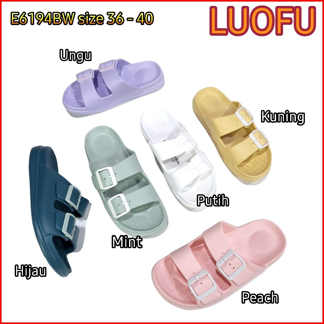 E6194bw Luofu Original Jelly Sandal Karet Empuk Murah Wanita Selop Import Ban 2 Sendal Cewek
