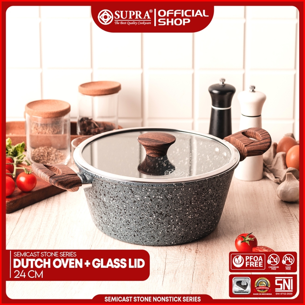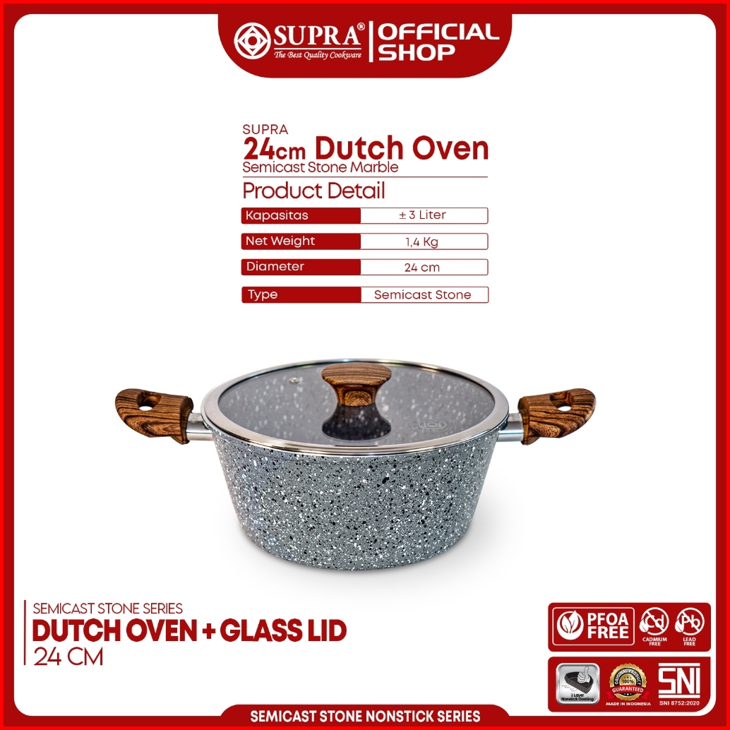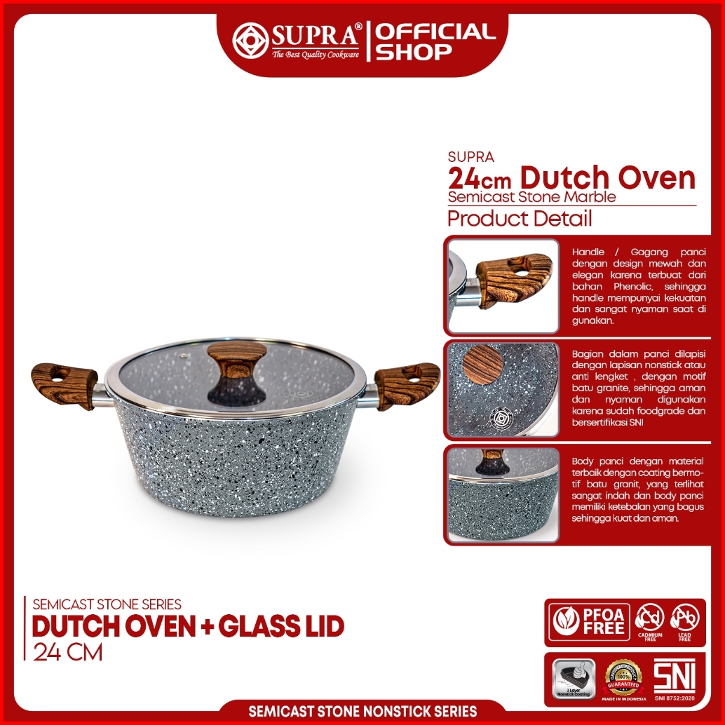 Supra Panci Anti Lengket Dutch Oven 24 Cm Semicast Stone Series