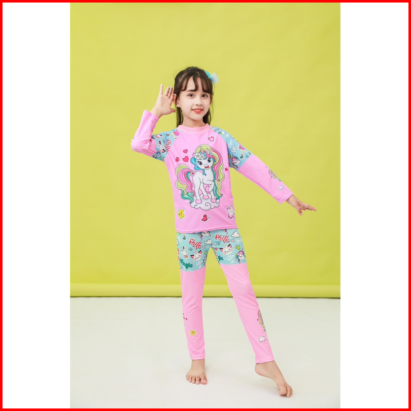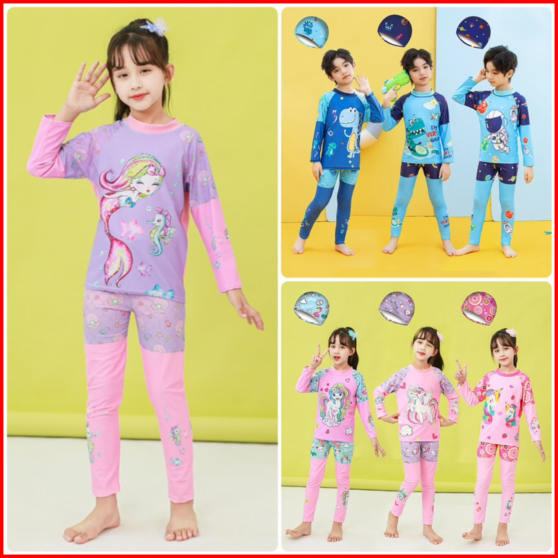 Baju Renang Setelan Panjang Anak Perempuan Laki Laki Include Topi Girl Boy Swimsuit Long Pants
