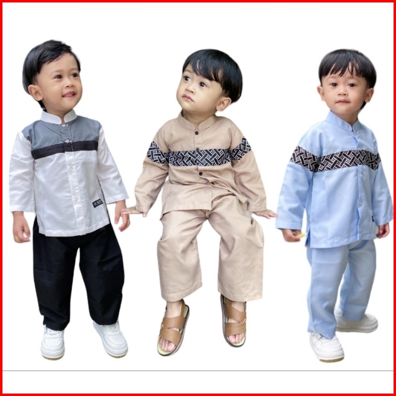 Setelan Baju Koko Anak Laki Laki Lengan Panjang Motif Kobata Terbaru Size 1tahun-11tahun Termurah