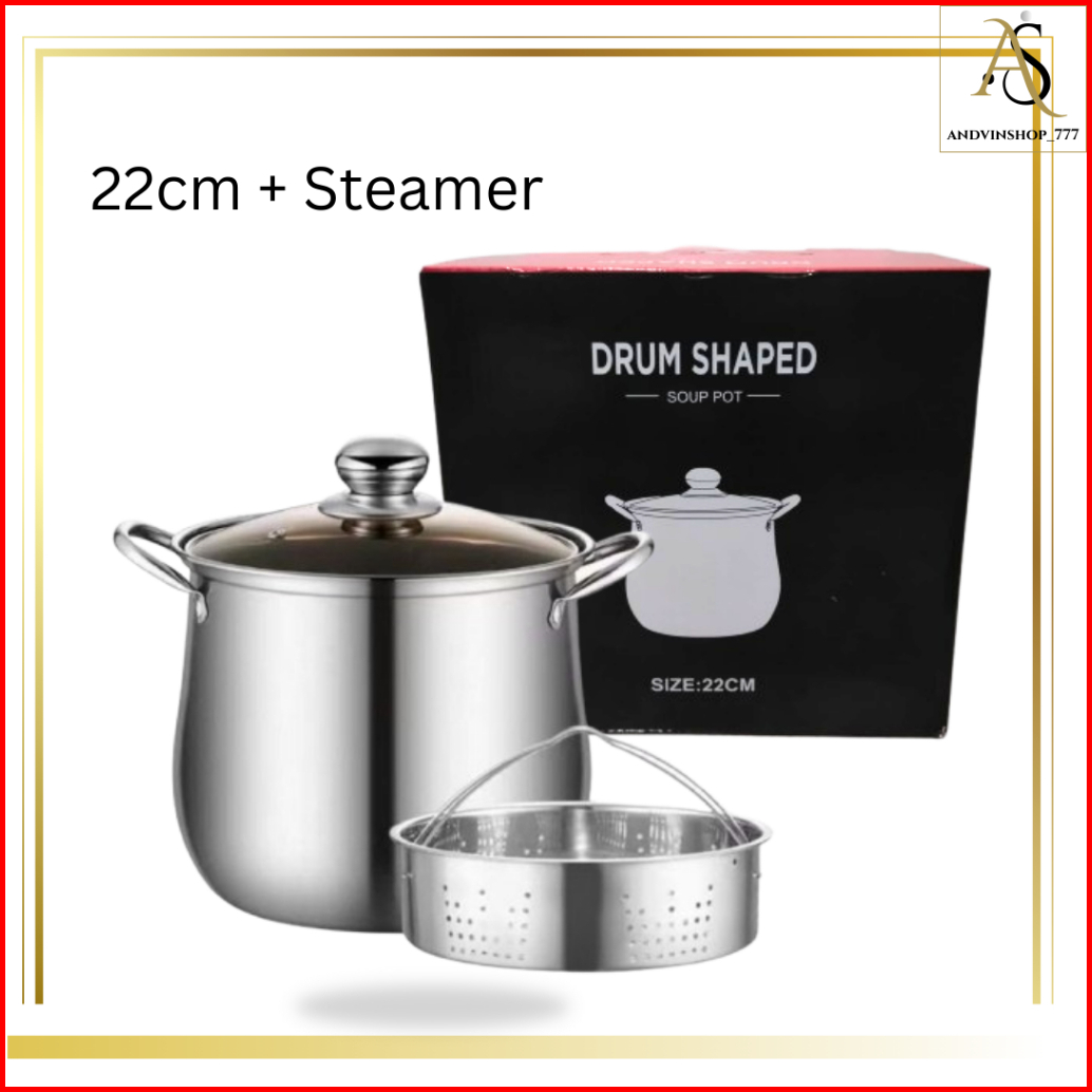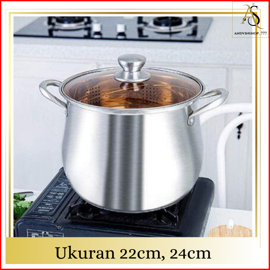 As - Panci Aladin 22cm 24cm Stokpot Stainless Steel Tebal Pot Set Dandang Steamer Kukusan Serbaguna