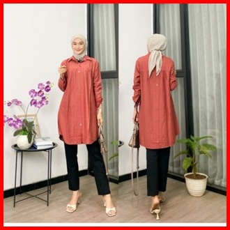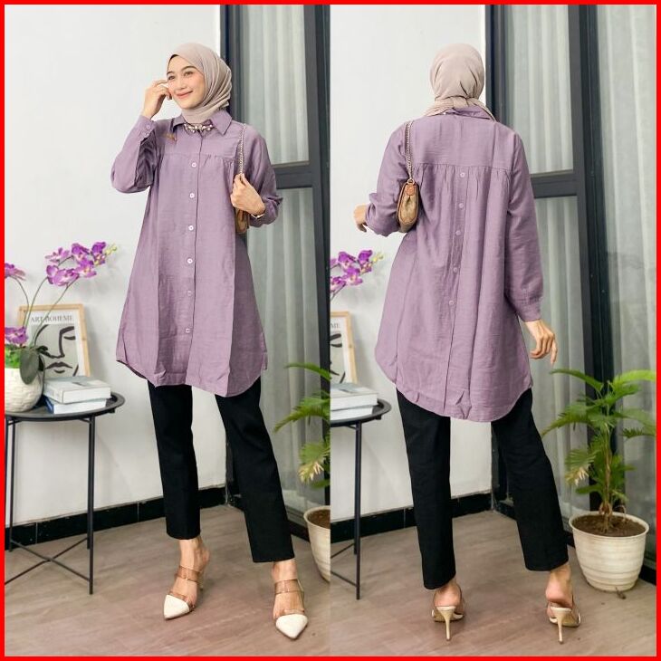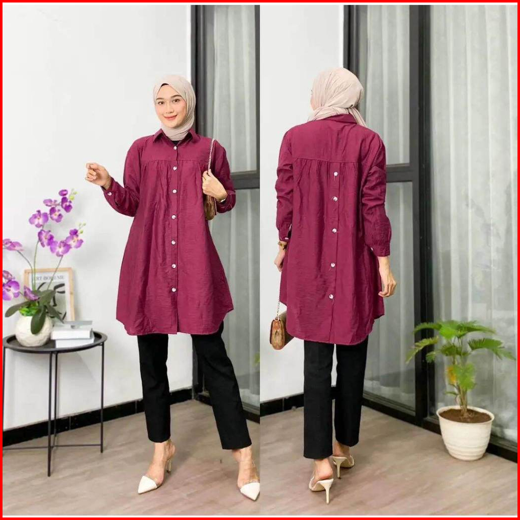 Atasan Tunik Wanita - Zufana Tunik Polo Linen Variasi Kancing Belakang Termurah