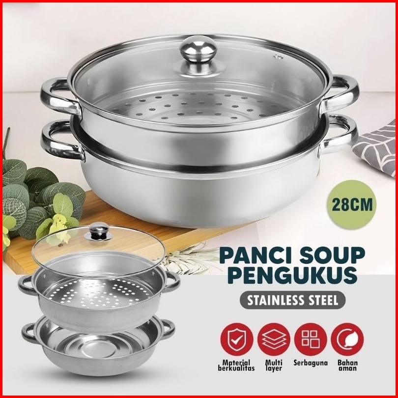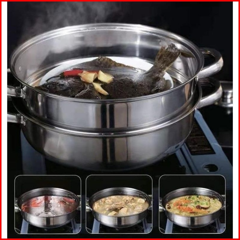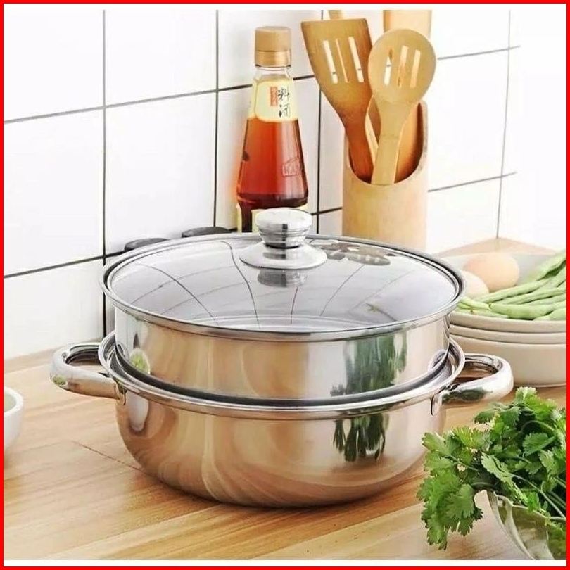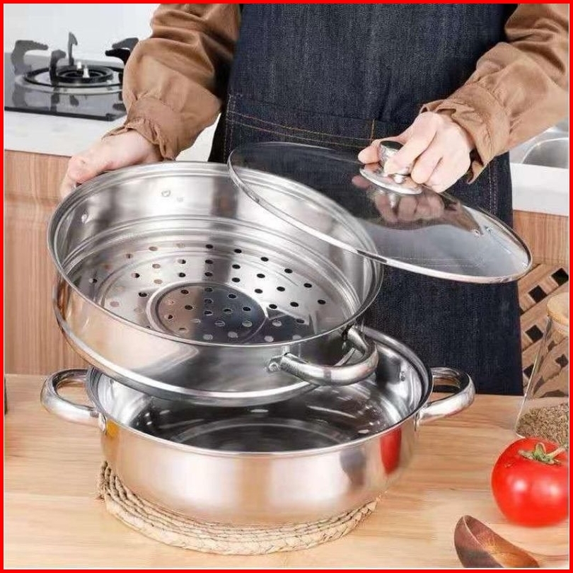Panci Steamer 2 Susun Panci Set Kukus Stainless Cookware